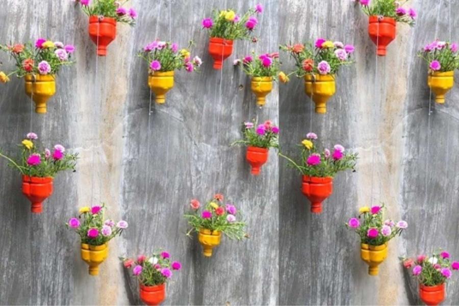 Cách làm chậu hoa bằng chai nhựa treo thành hình trái tim