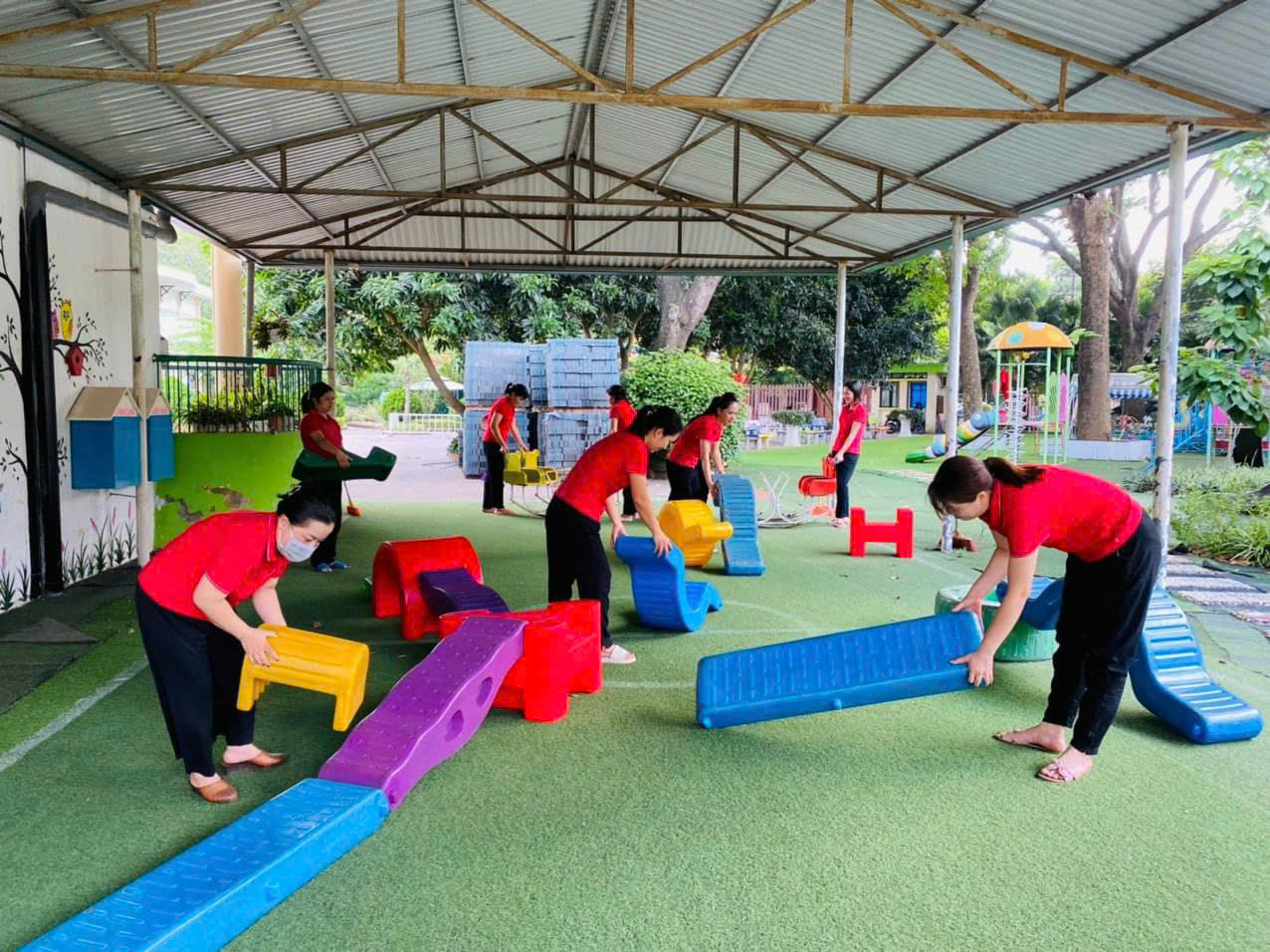 Trước tình hình ca mắc Sởi, tay chân miệng đang có diễn biến phức tạp tại cộng đồng. Trường mầm non Hoa Sen thực hiện công tác vệ sinh phòng chống dịch bệnh, khử khuẩn trường, lớp học, đảm bảo vệ sinh môi trường sạch sẽ, thông thoáng. Khử trùng đồ chơi, dụng cụ học tập, tay nắm cửa, tay vịn cầu thang, mặt bàn, ghế bằng các dung dịch vệ sinh như Vim, Laiboi và Cloramin B hoạt tính.