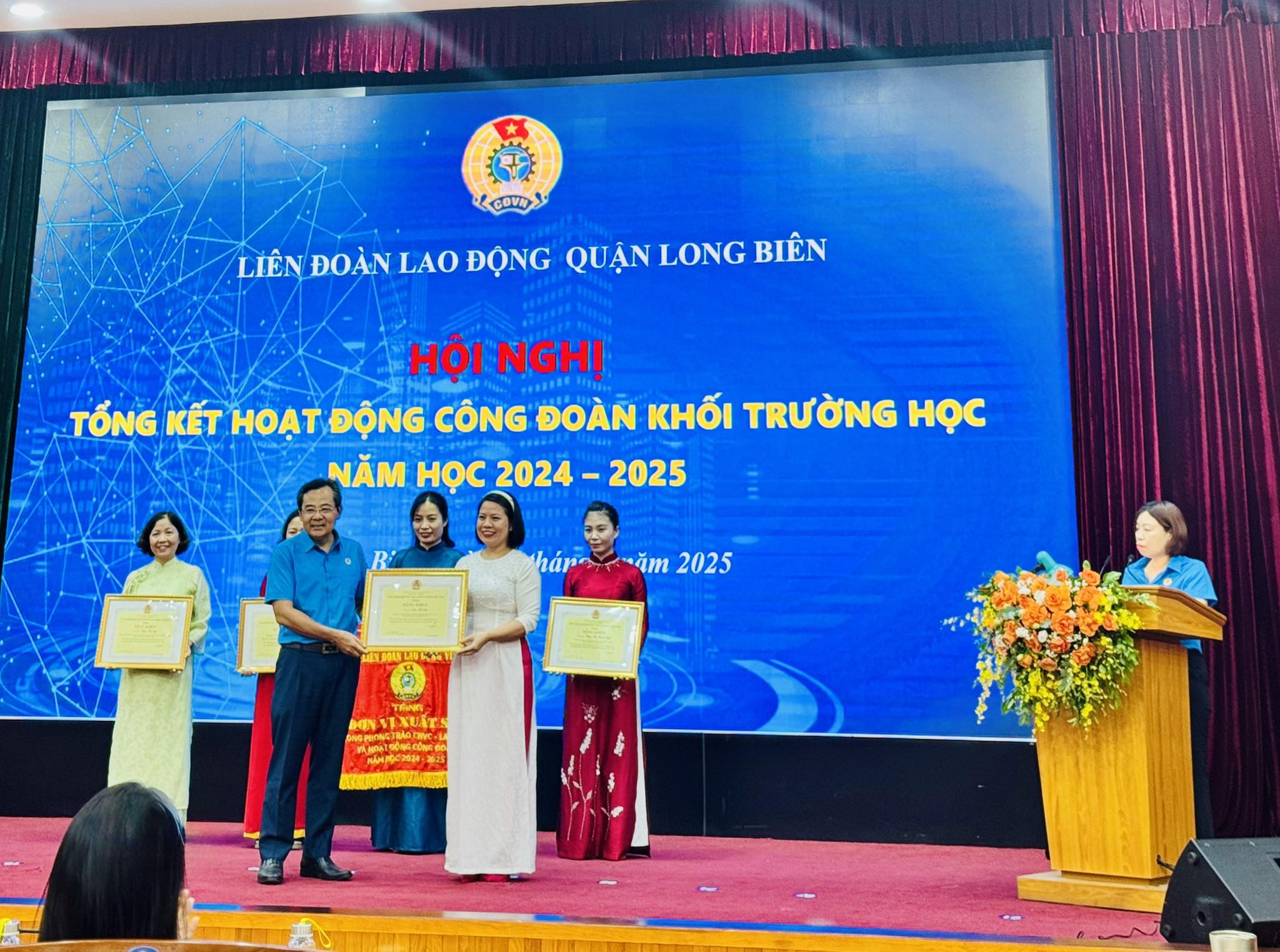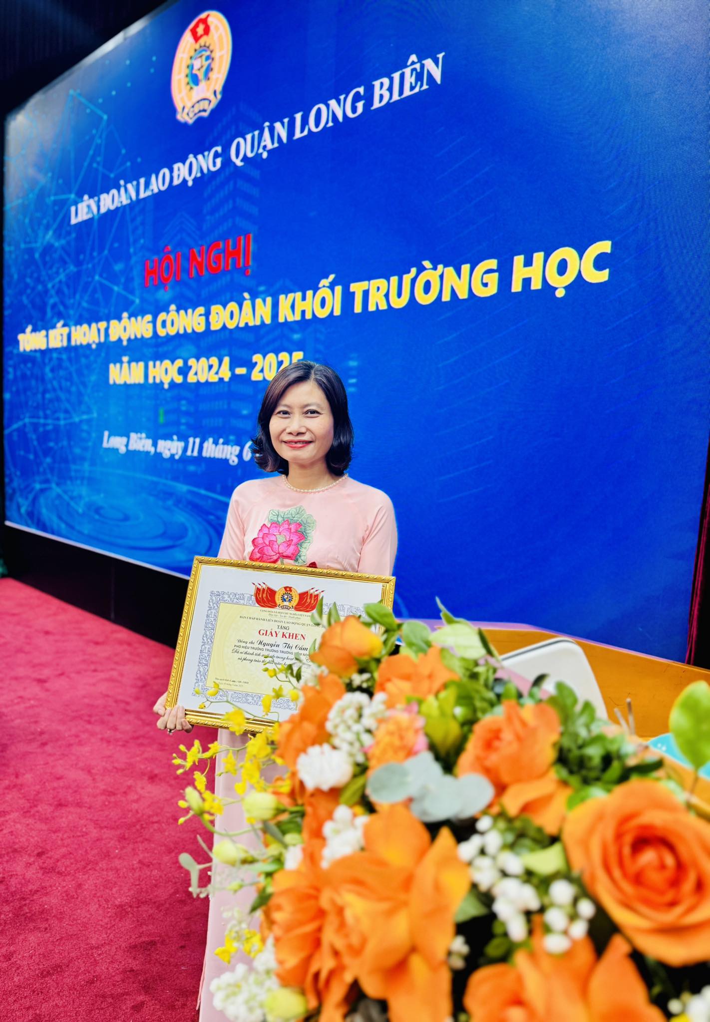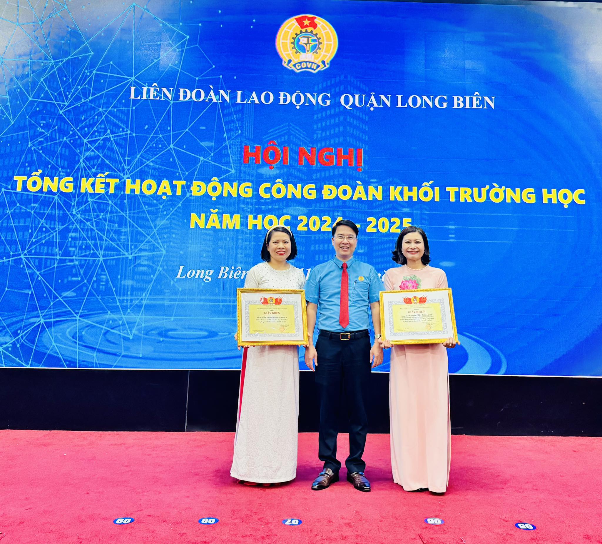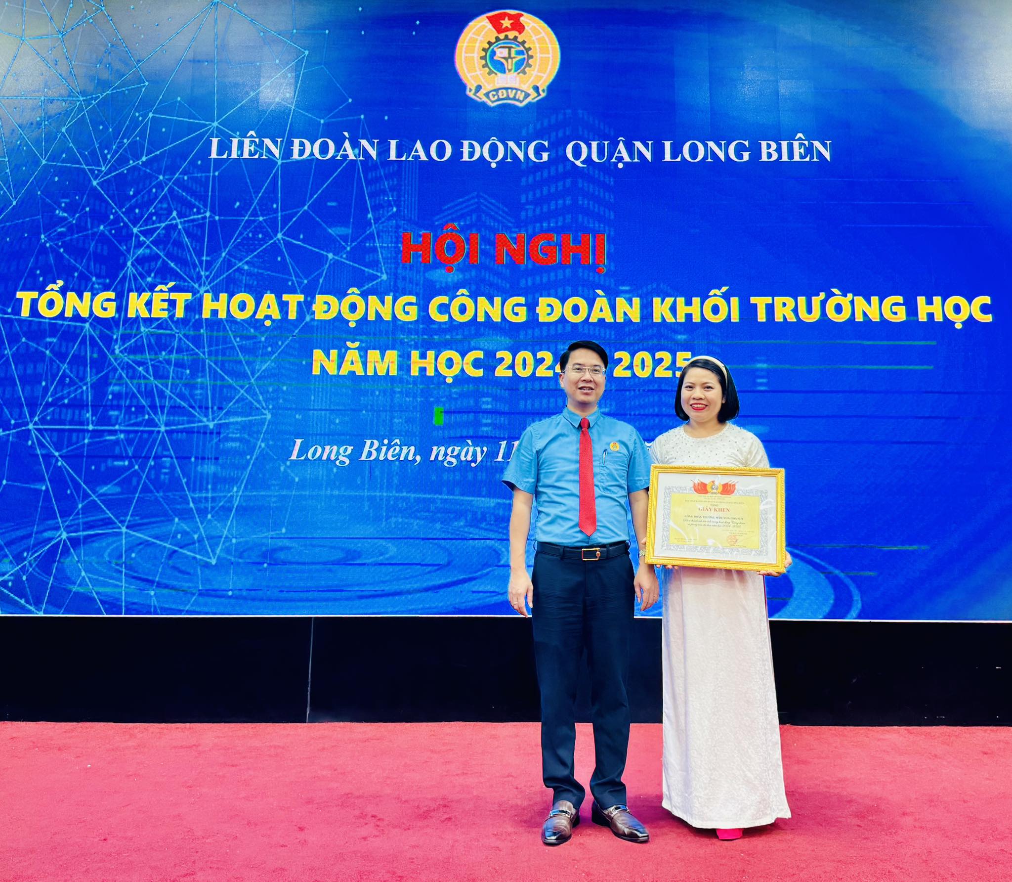 • Đ/c Nguyễn Thị Cẩm Linh – Phó Bí thư Chi bộ, Phó Hiệu trưởng – được LĐLĐ quận Long Biên trao tặng giấy khen vì đã có nhiều đóng góp tích cực trong phong trào Công đoàn.