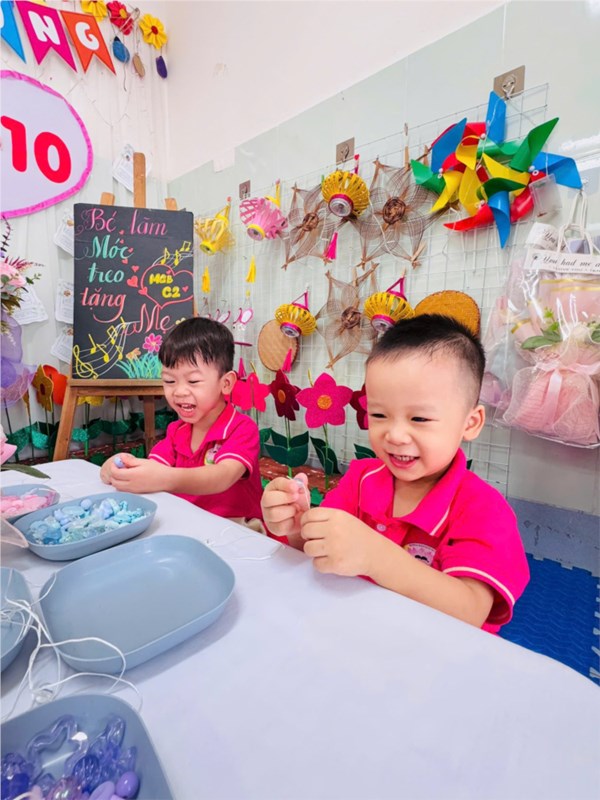 Tập ảnh : Ảnh đẹp tháng 10/2025- Các bé lớp C2 làm móc treo điện thoại tặng mẹ