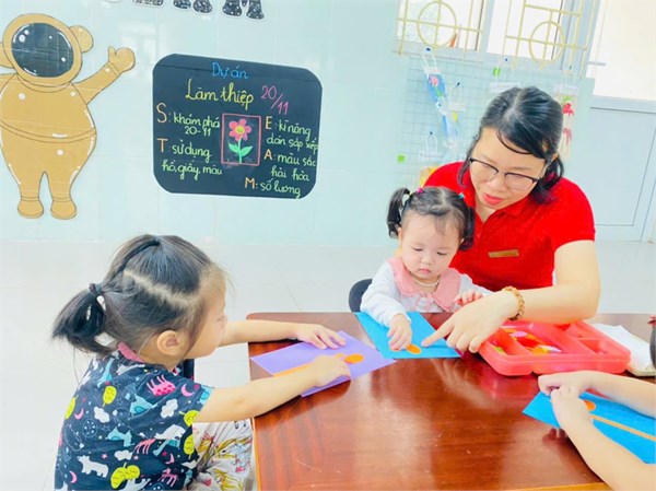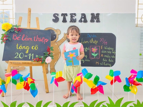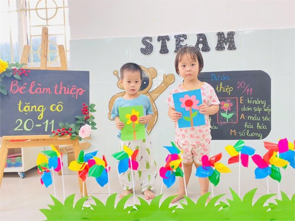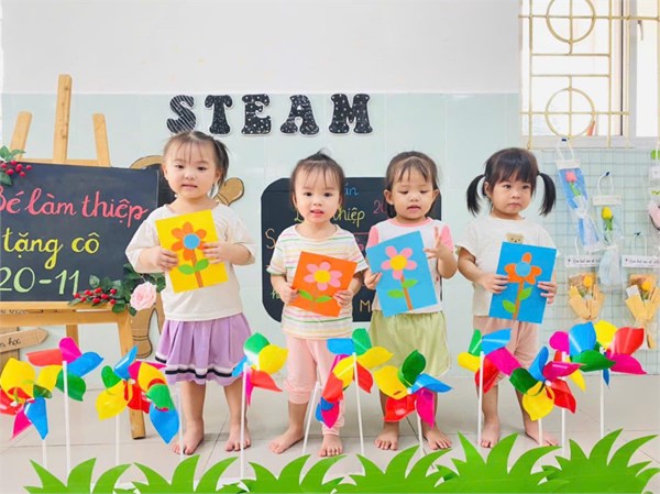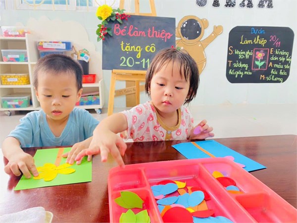 Tập ảnh : Ảnh đẹp tháng 11/ 2024- Các bé lớp Nhà trẻ làm thiệp tặng cô giáo