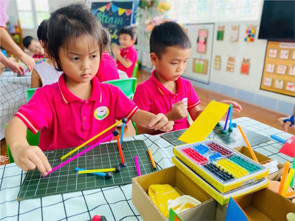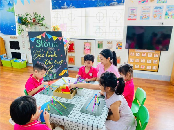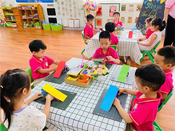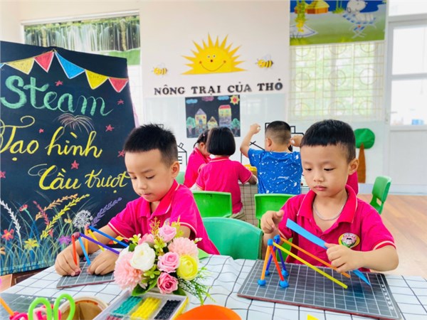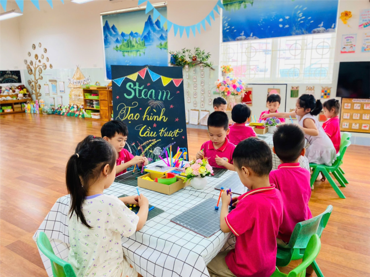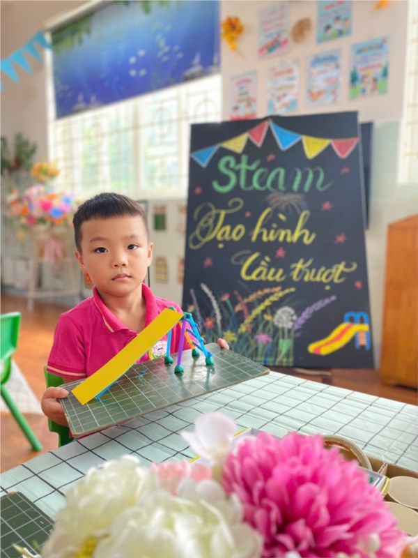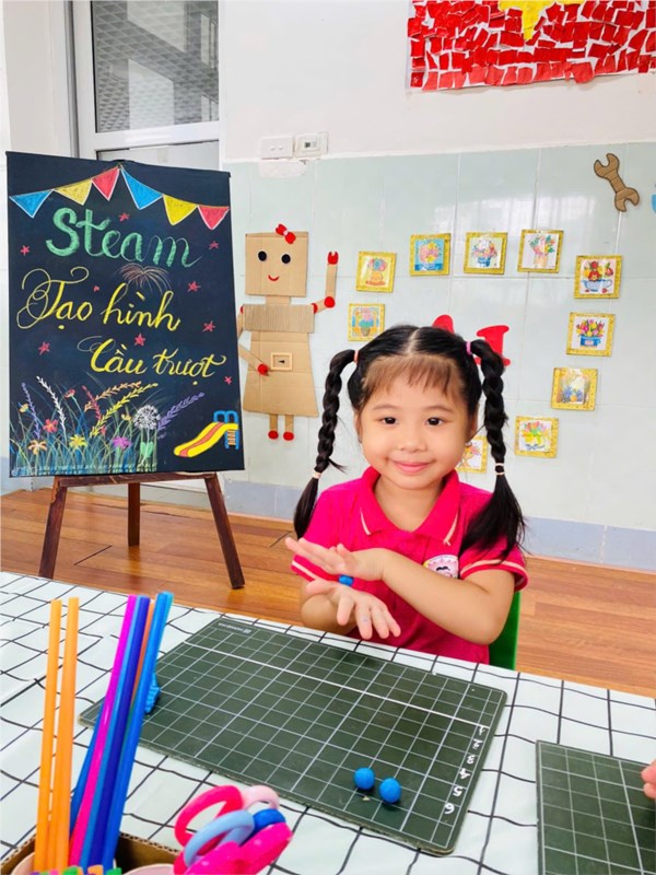 Tập ảnh : Ảnh đẹp tháng 11/2025 - Tiết học Steam của các bé lớp A1- Cùng tạo hình cầu trượt vui nhộn.