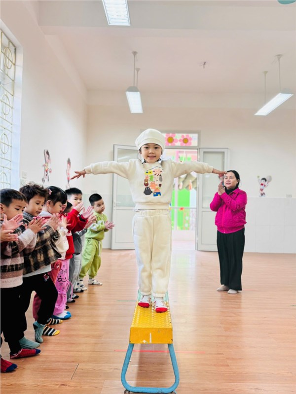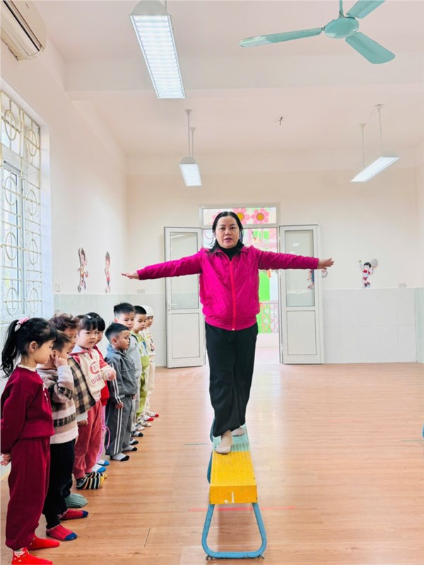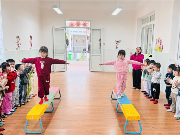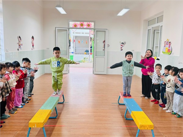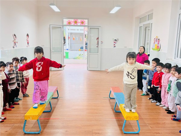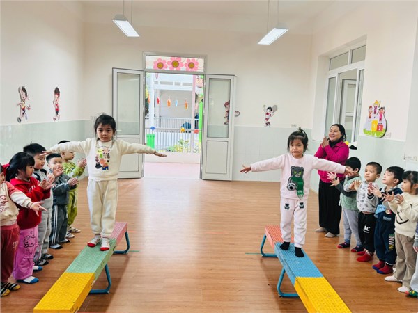 Tập ảnh : Ảnh đẹp tháng 1/2026 - Hoạt động “Đi trên ghế thể dục – TCVĐ: Tạo dáng” - Lớp MG nhỡ B2