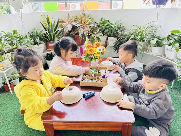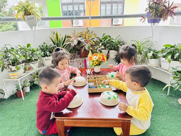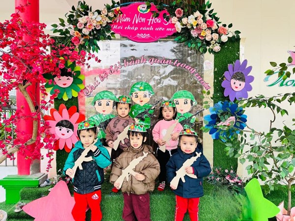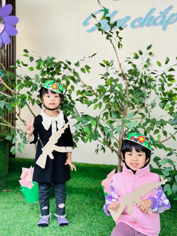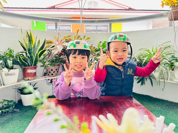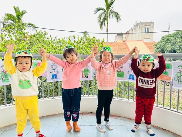 Tập ảnh : Ảnh đẹp tháng 12/2024 - Các bé lớp C3 trang trí mũ tặng chú bộ đội.