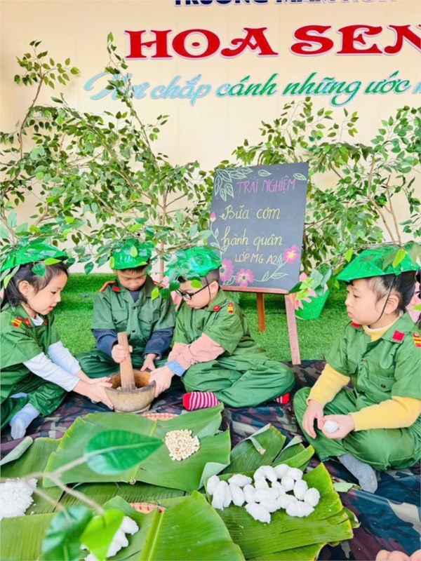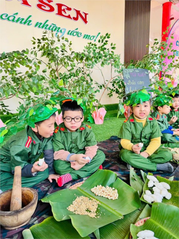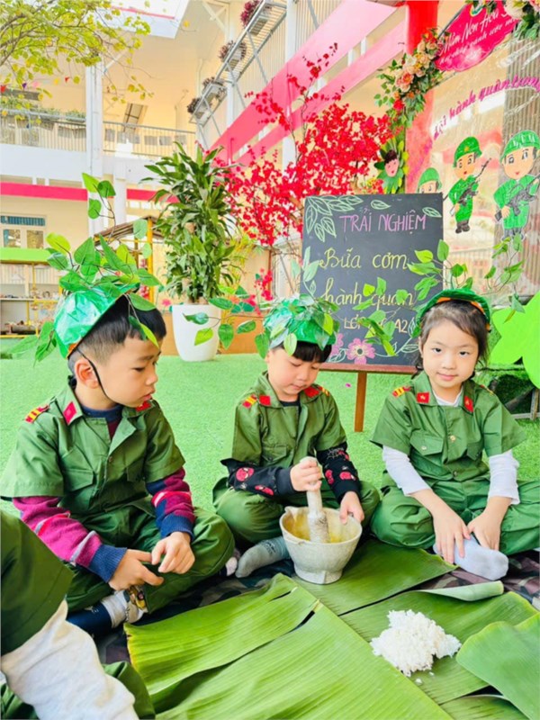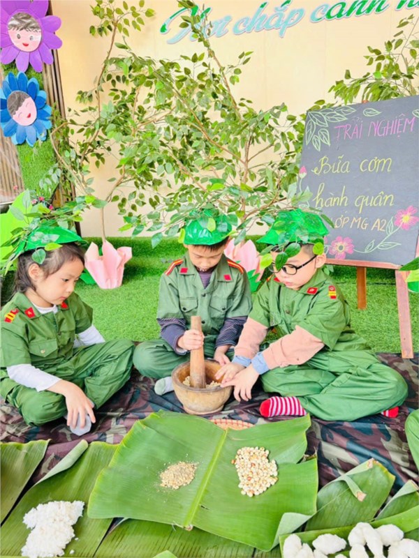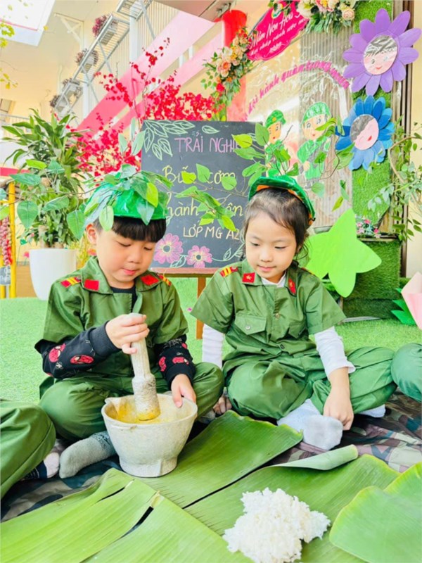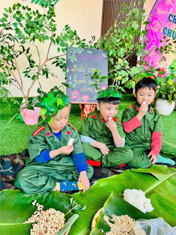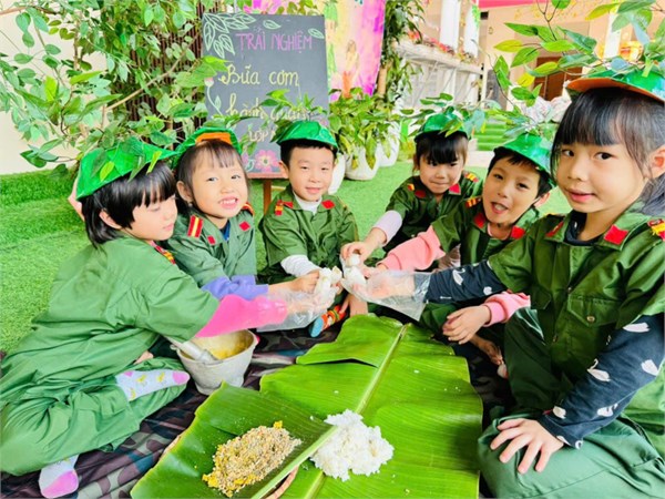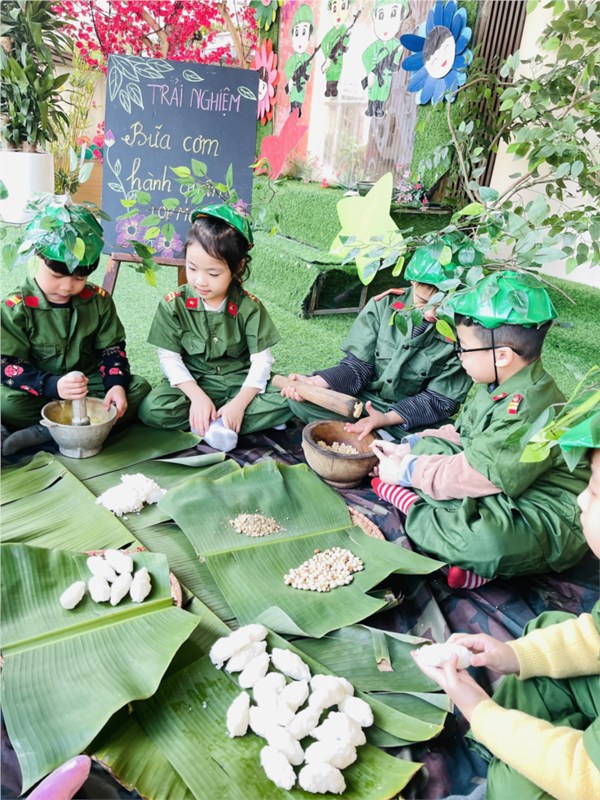 Tập ảnh : Ảnh đẹp tháng 12/2024 - Hoạt động trải nghiệm "Bữa cơm hành quân - Cơm nắm muối vừng" của các bé MGL A2