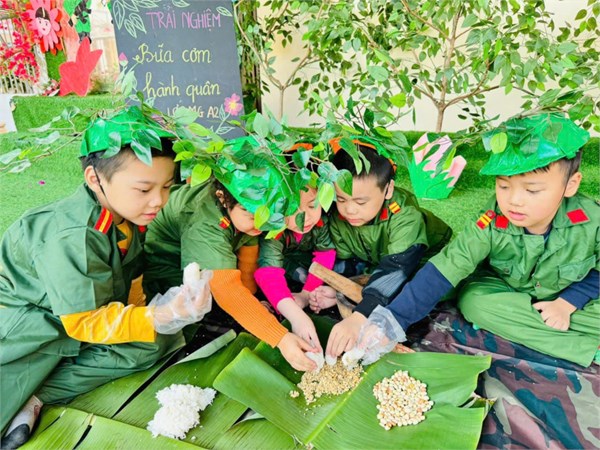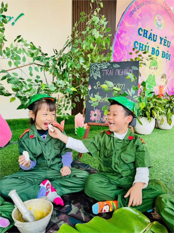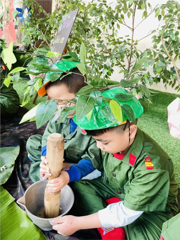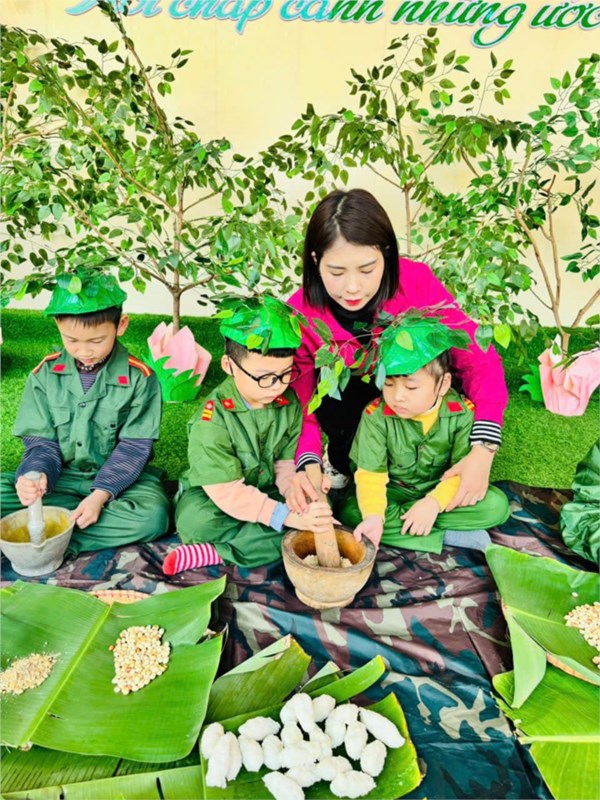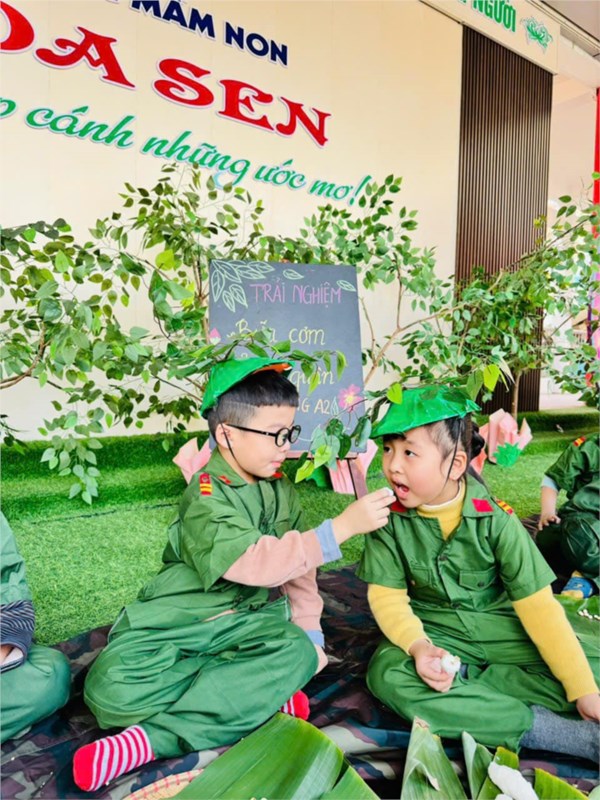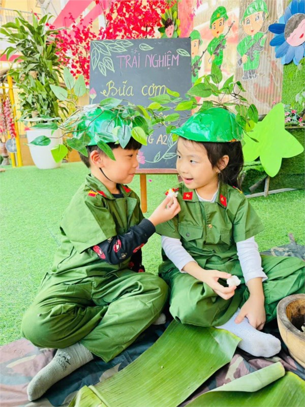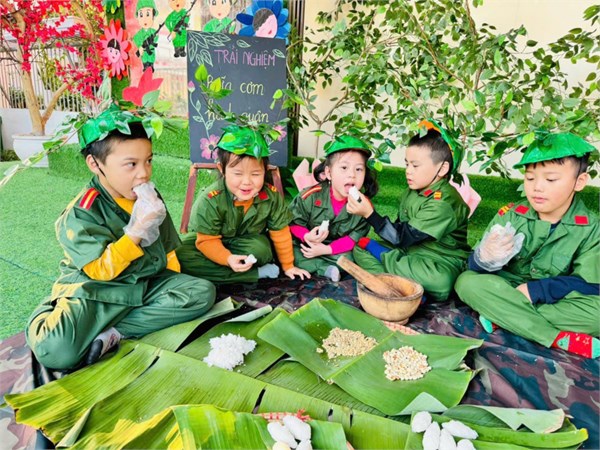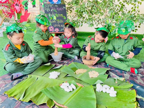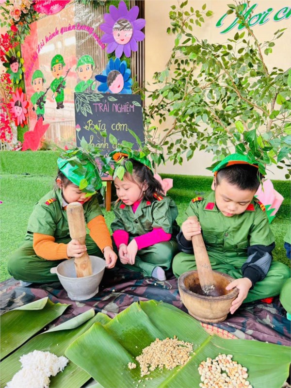 Tập ảnh : Ảnh đẹp tháng 12/2024 - Hoạt động trải nghiệm "Bữa cơm hành quân - Cơm nắm muối vừng" của các bé MGL A2
