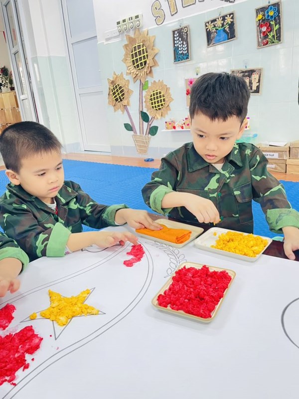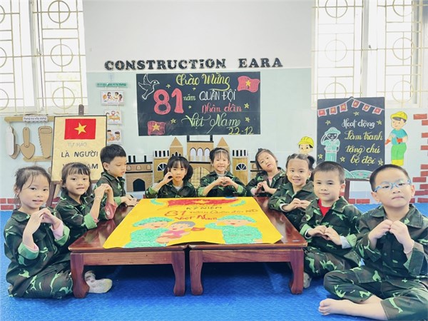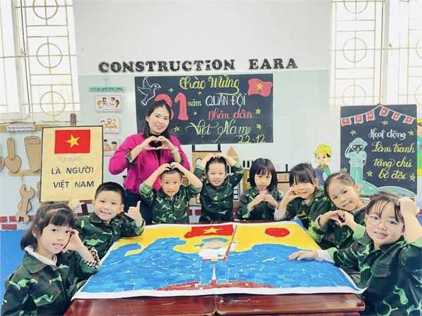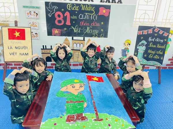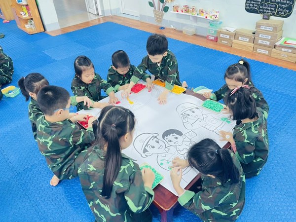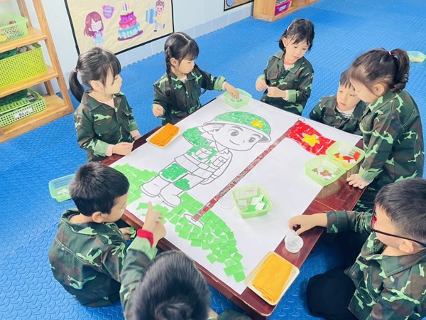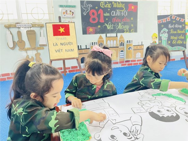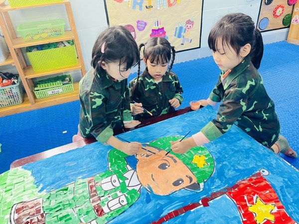 Tập ảnh : Ảnh đẹp tháng 12/2025- Các bé lớp A2 làm tranh tặng chú bộ đội