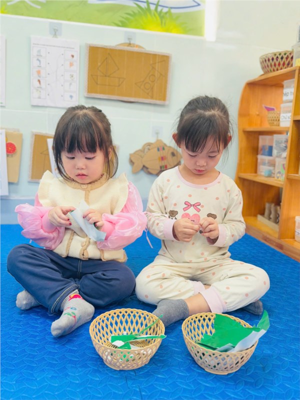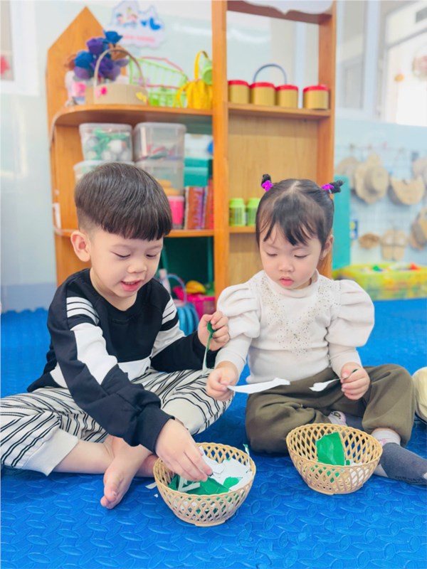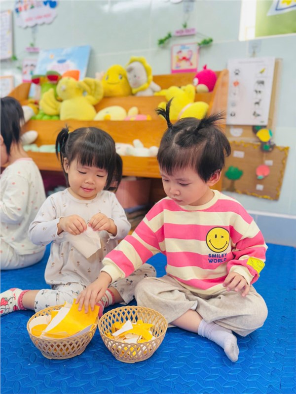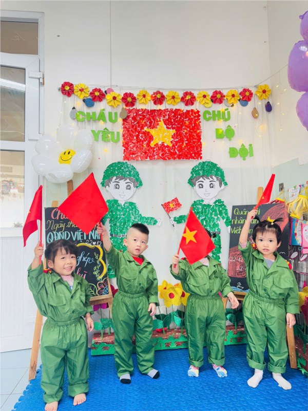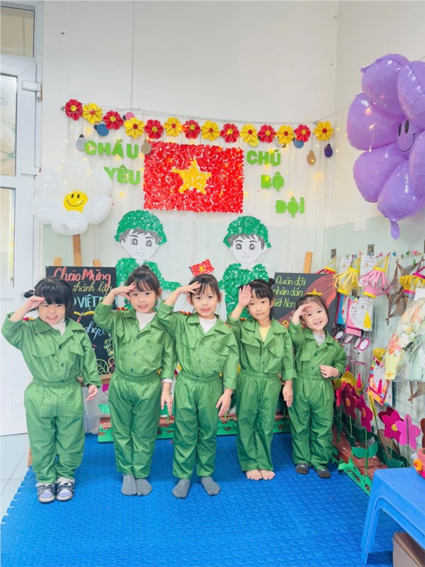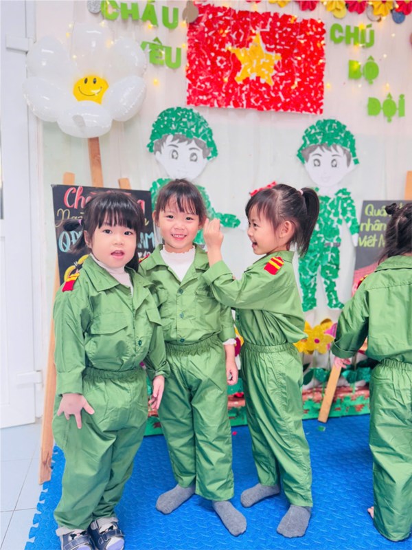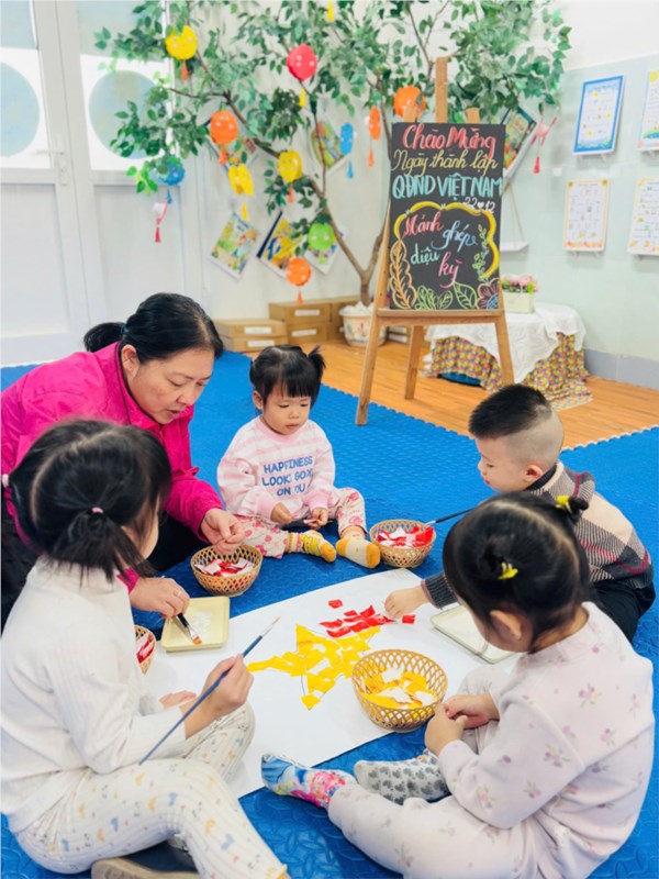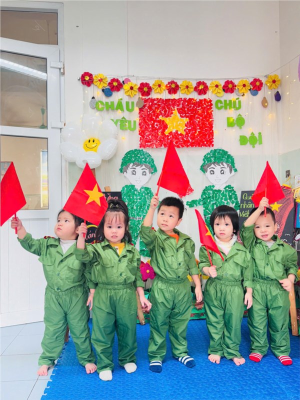 Tập ảnh : Ảnh đẹp tháng 12/2025- HĐ xé dán tạo hình lá cờ và chú bộ đội - Lớp MG bé C2