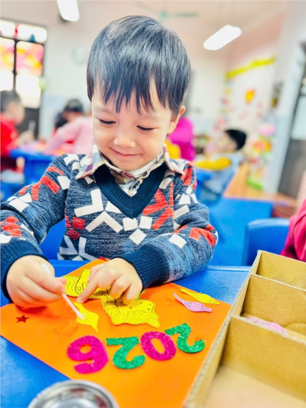 Tập ảnh : Ảnh đẹp tháng 2/2026- Các bé lớp B3 với hoạt động "Làm liễn treo Tết"