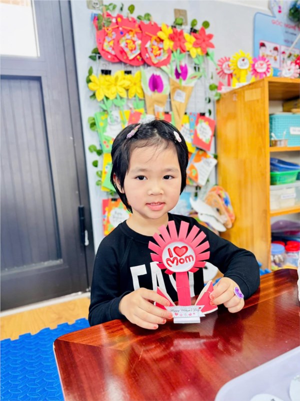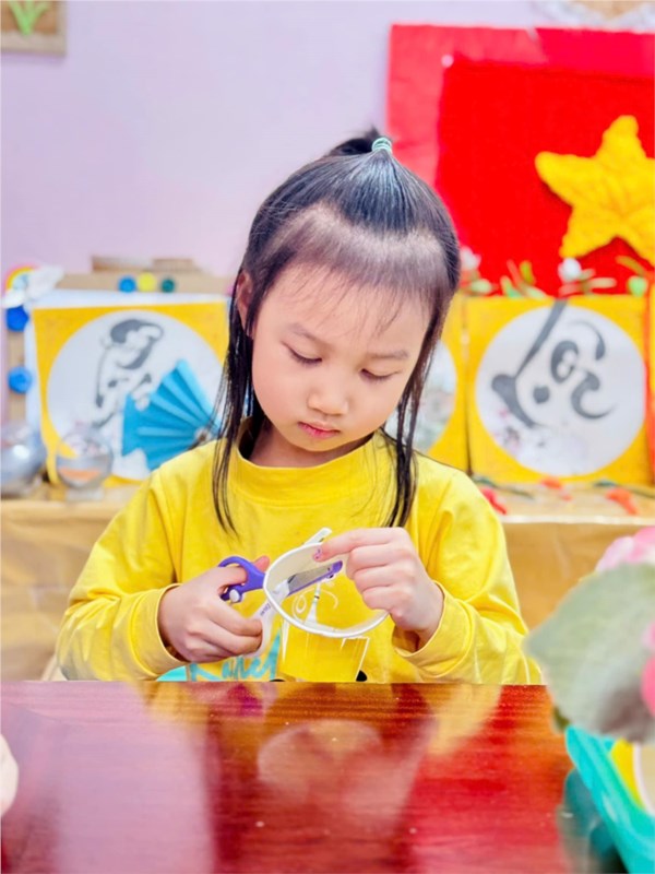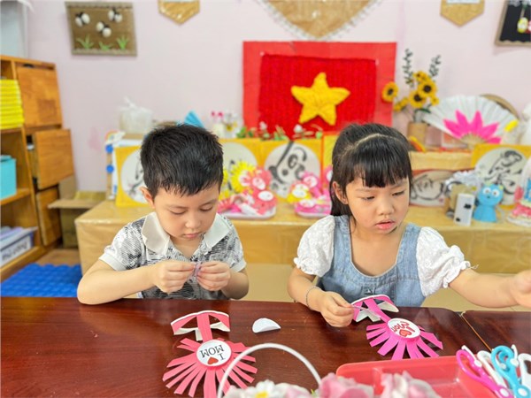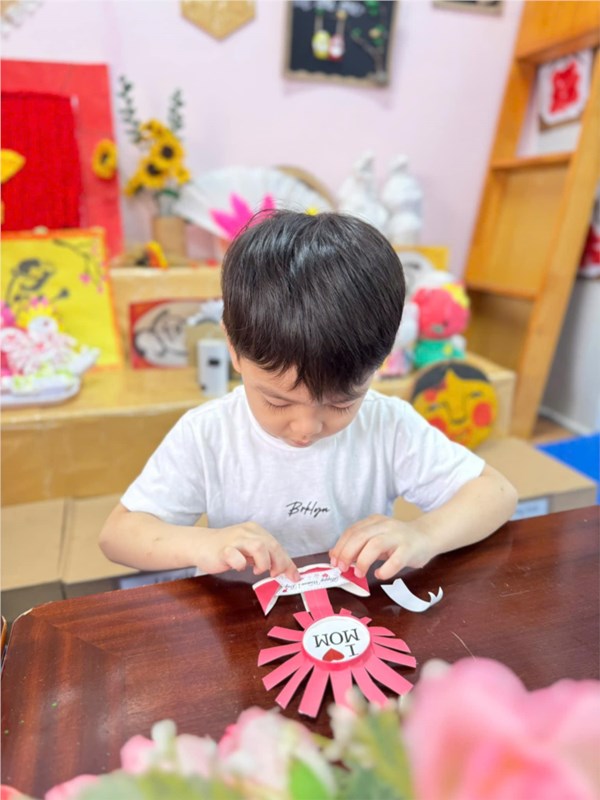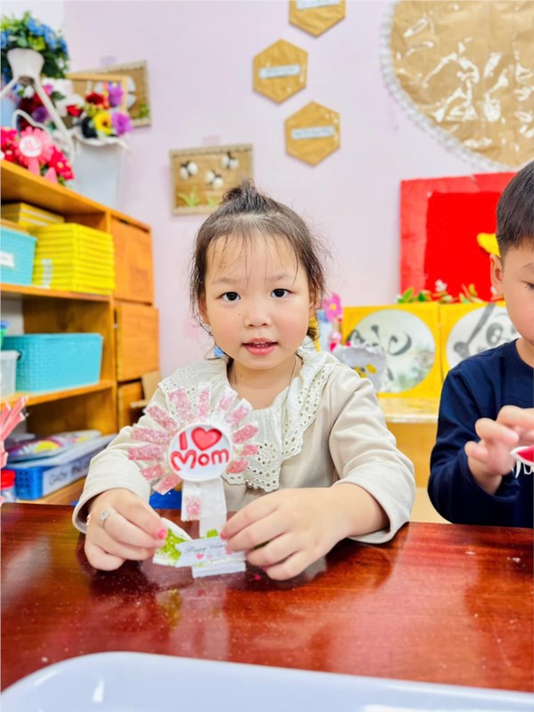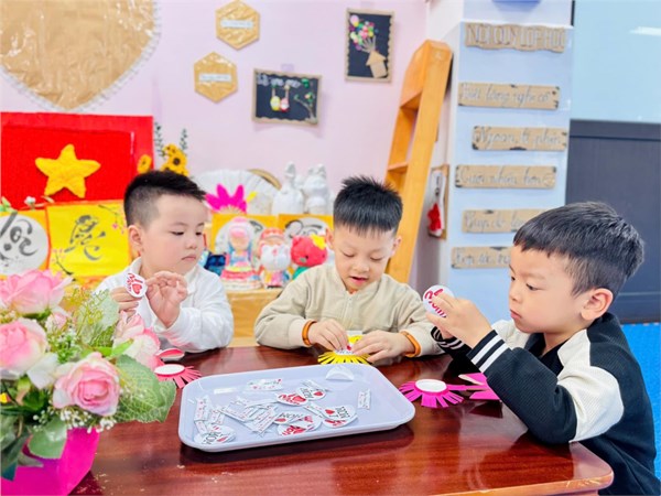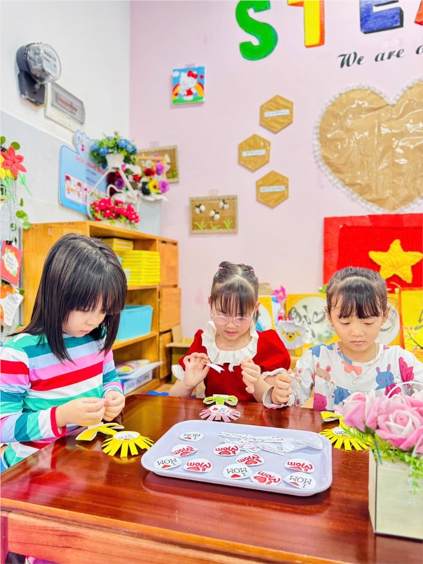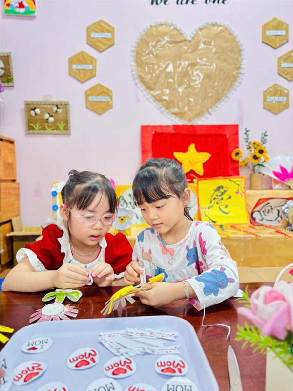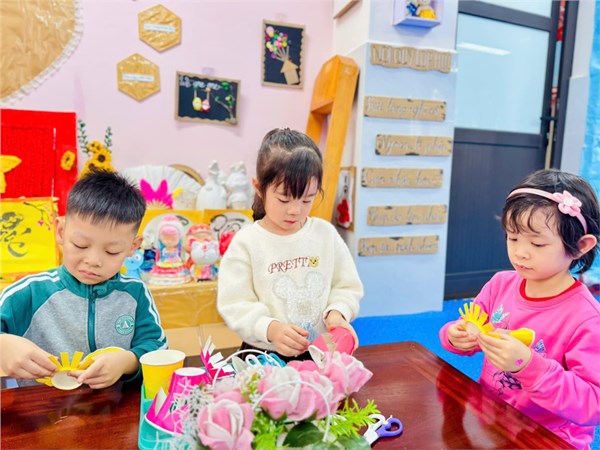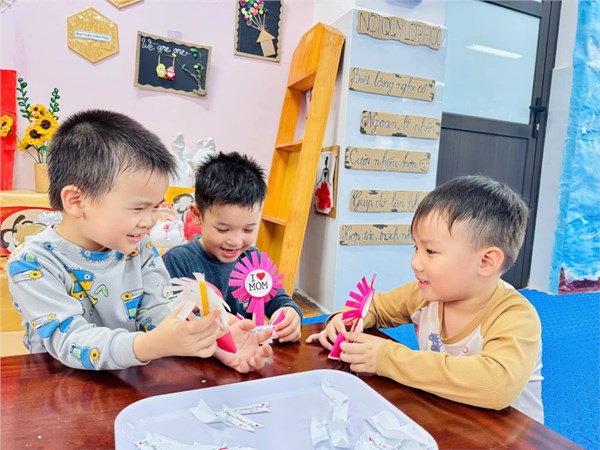 Tập ảnh : Ảnh đẹp tháng 3/2025 - Các bé lớp MG nhỡ B2 với hoạt động cắt dán hoa tặng mẹ