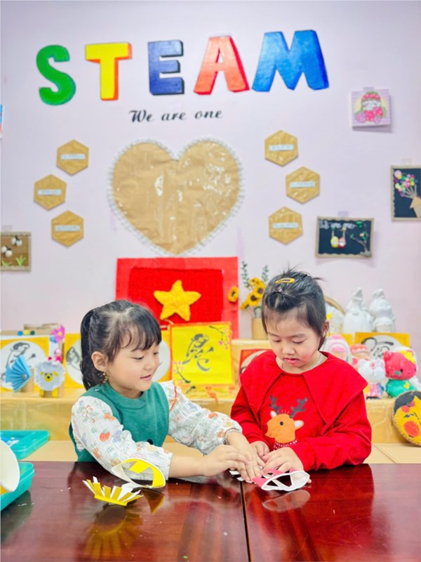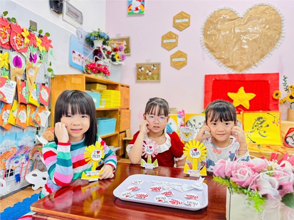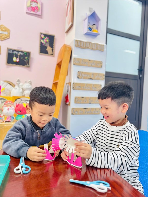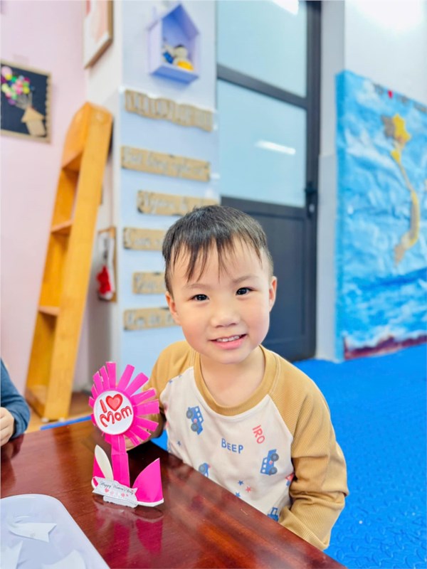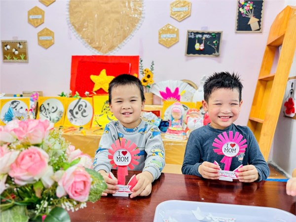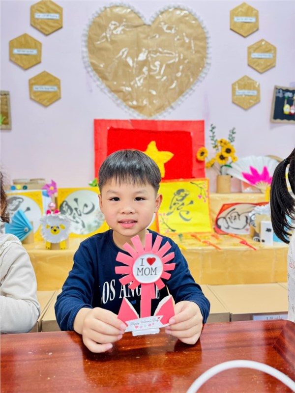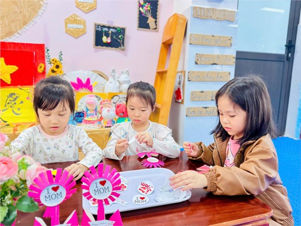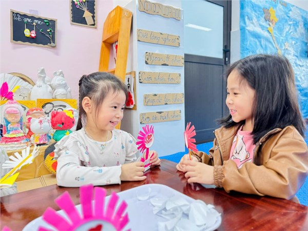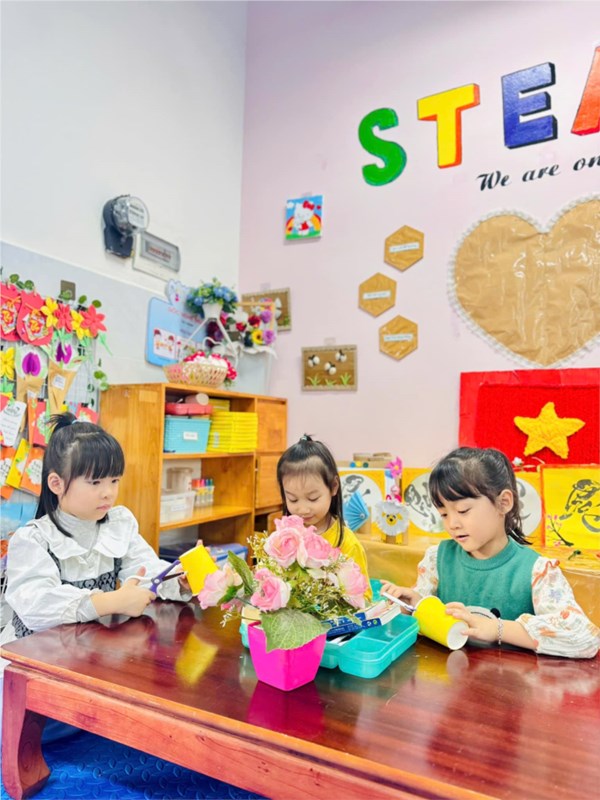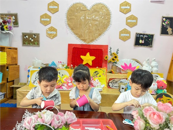 Tập ảnh : Ảnh đẹp tháng 3/2025 - Các bé lớp MG nhỡ B2 với hoạt động cắt dán hoa tặng mẹ
