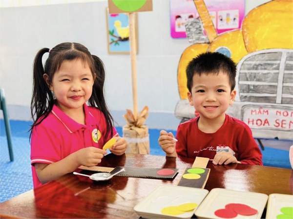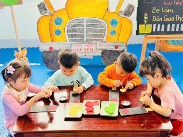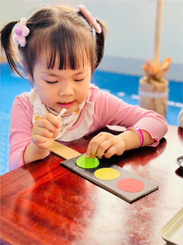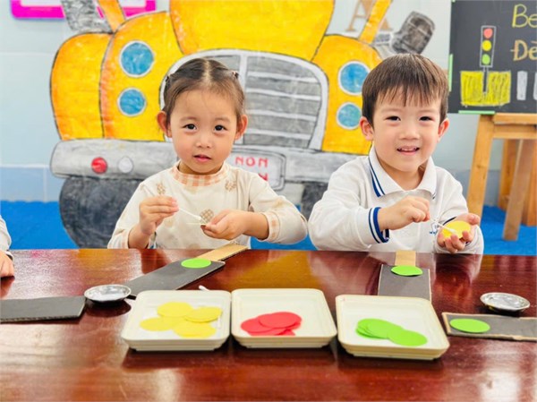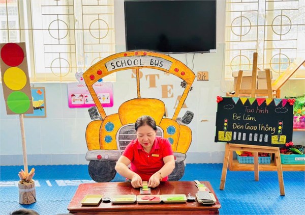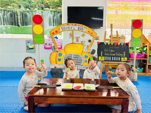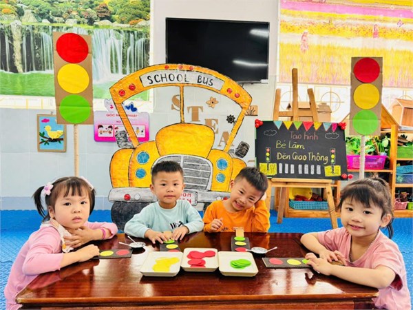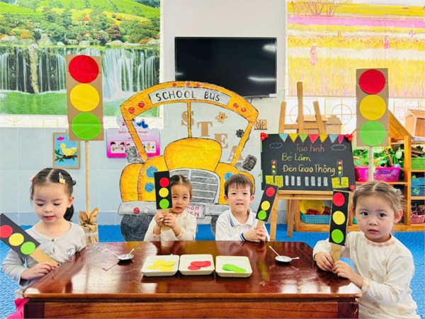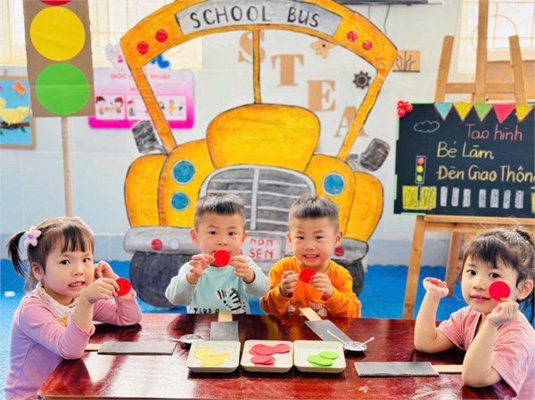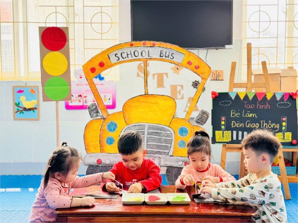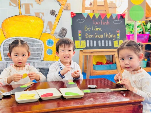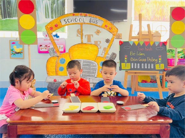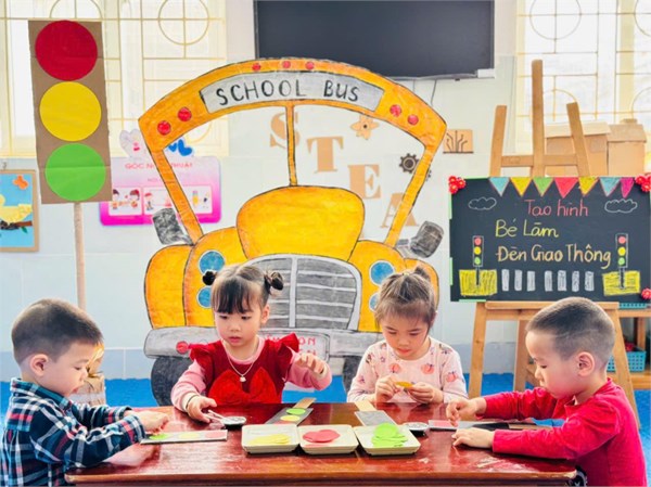 Tập ảnh : Ảnh đẹp tháng 3/2025 - Giờ học tạo hình "Làm đèn giao thông " - Lớp MG bé C2