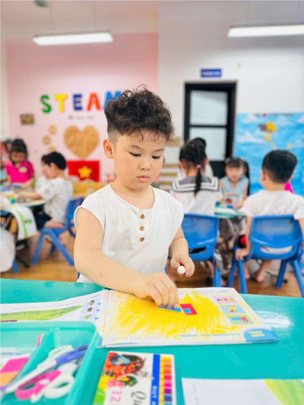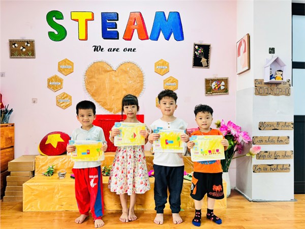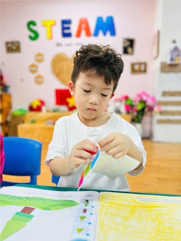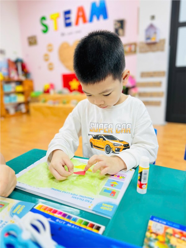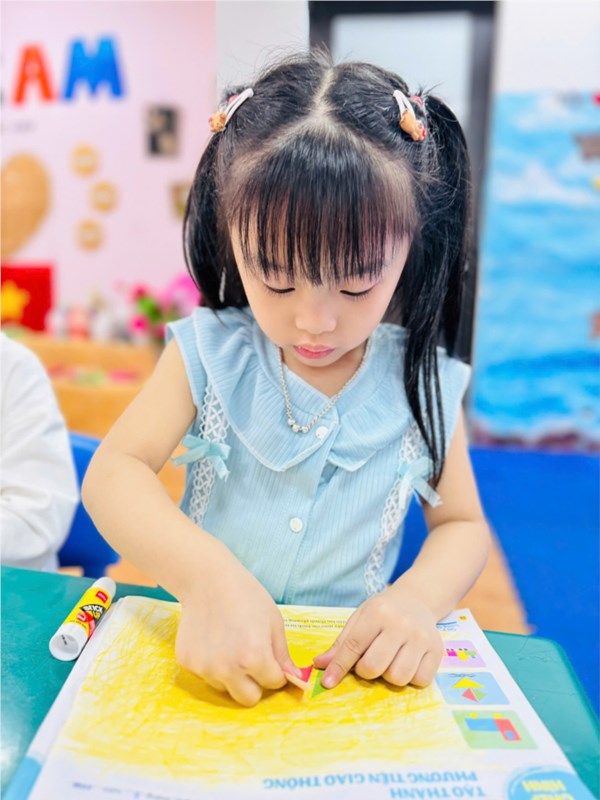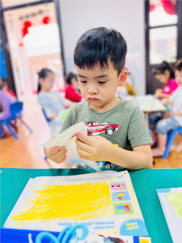 Tập ảnh : Ảnh đẹp tháng 3/2026 - Bé ghép hình tạo thành phương tiện giao thông – Lớp MG nhỡ B2