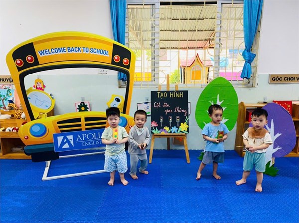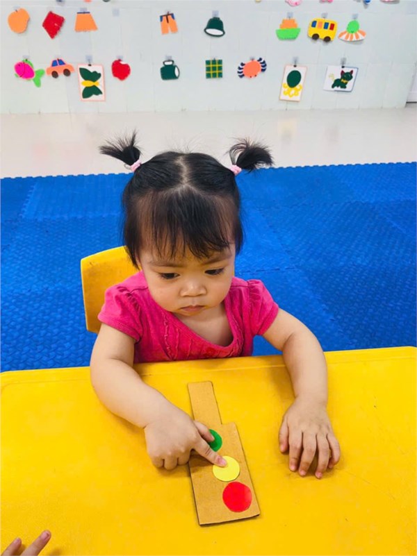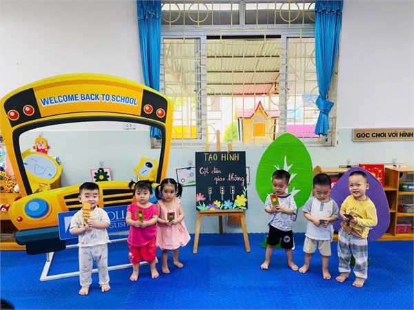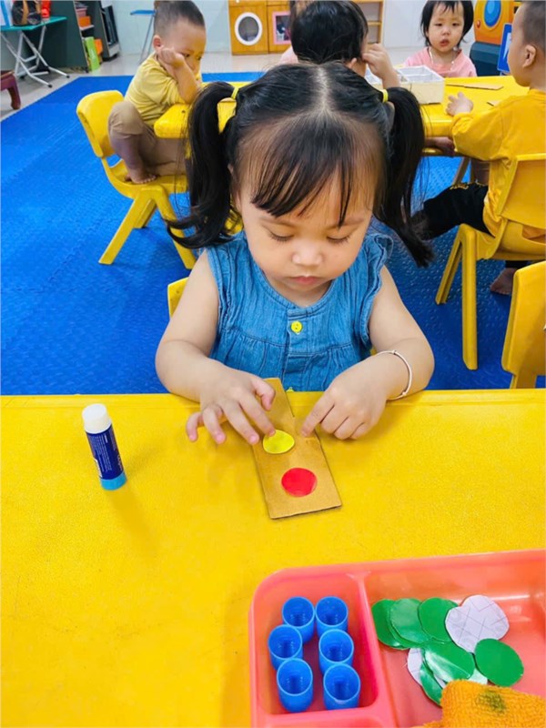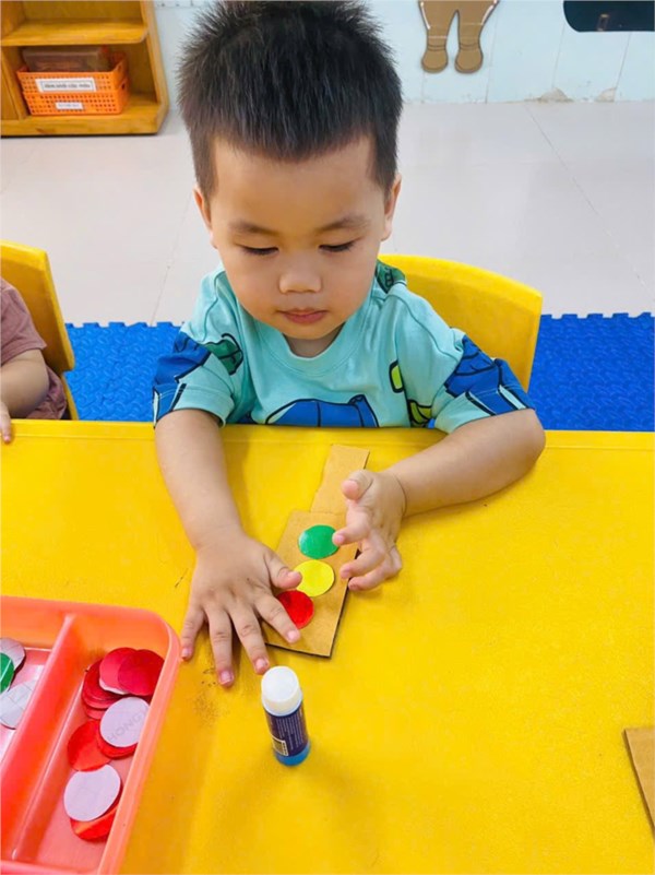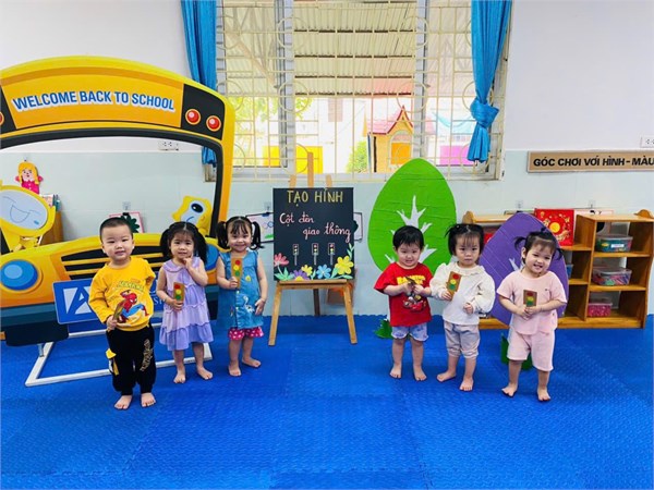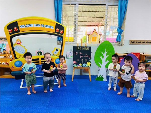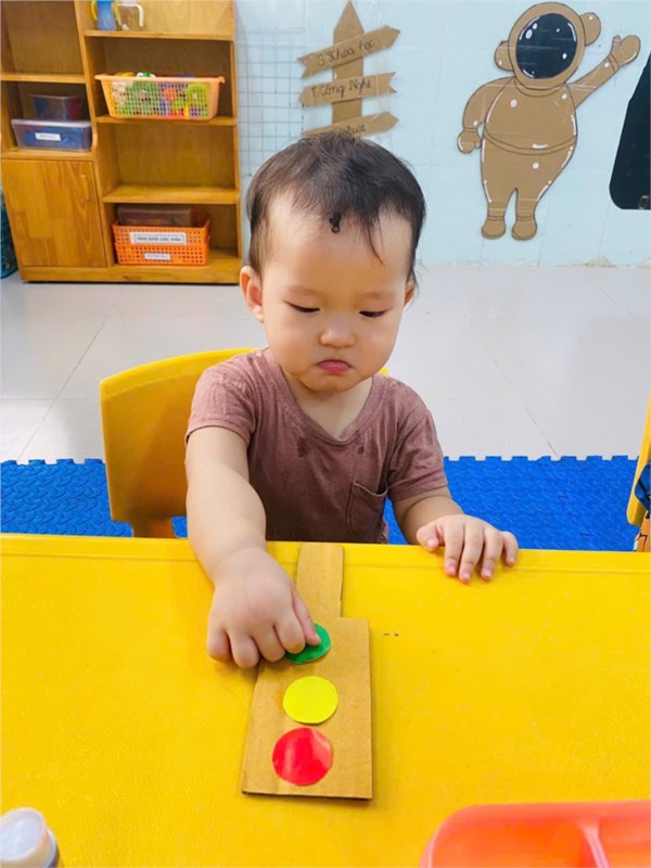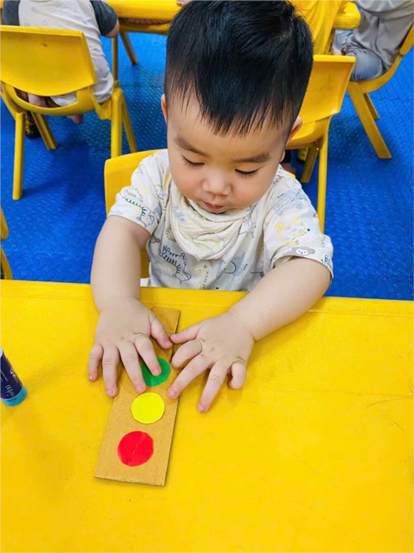 Tập ảnh : Ảnh đẹp tháng 4/2026- Các bé lớp Nhà trẻ D1 với hoạt động: Dán cột đèn giao thông