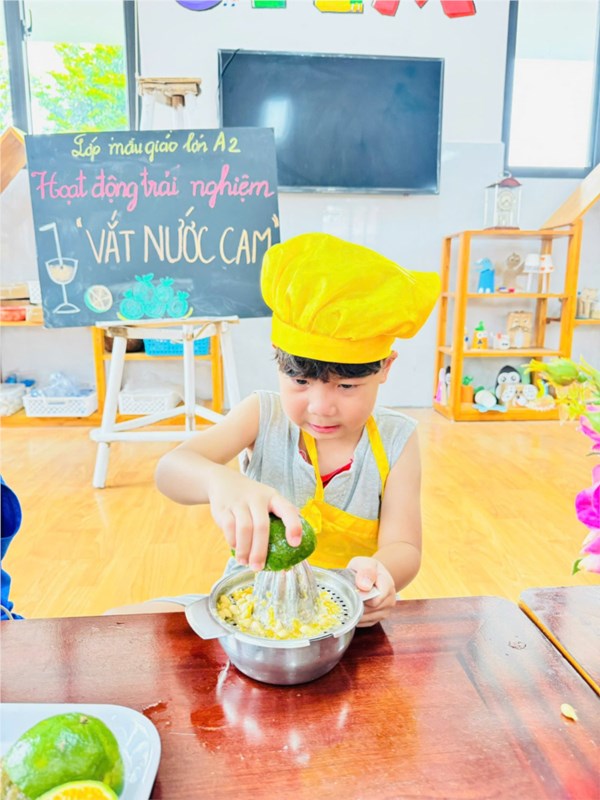 Tập ảnh : Ảnh đẹp tháng 5/2025 - HĐ trải nghiệm vắt nước cam - Lớp MGL A2