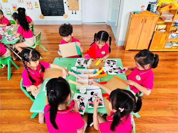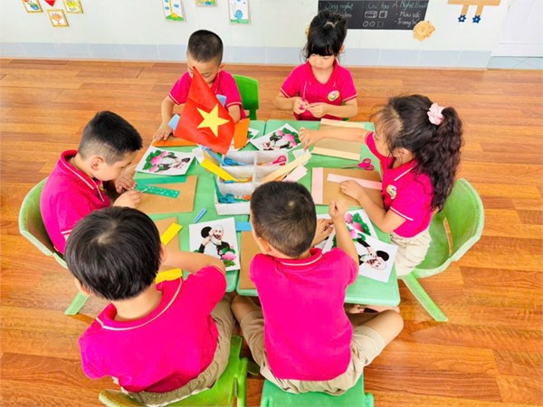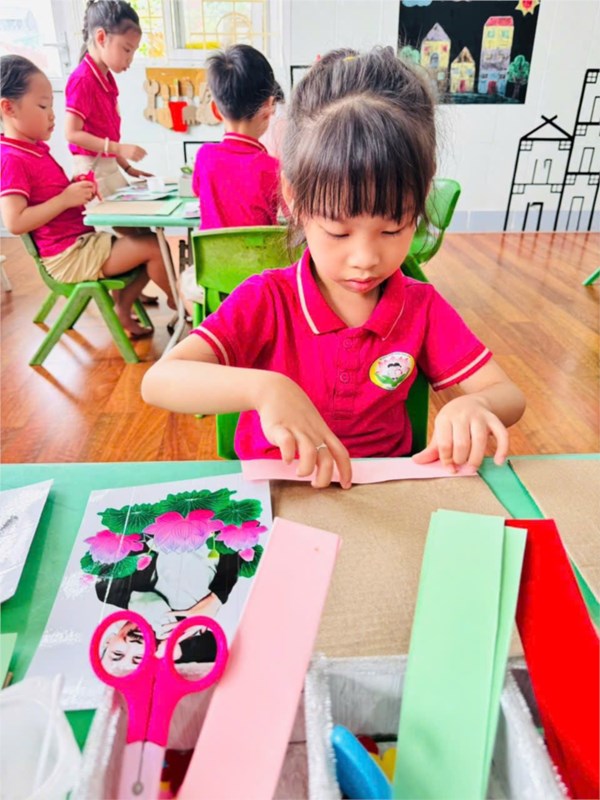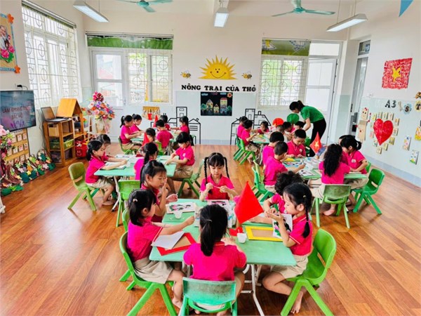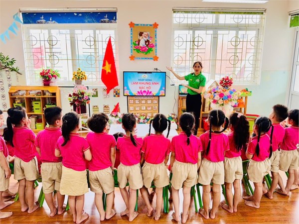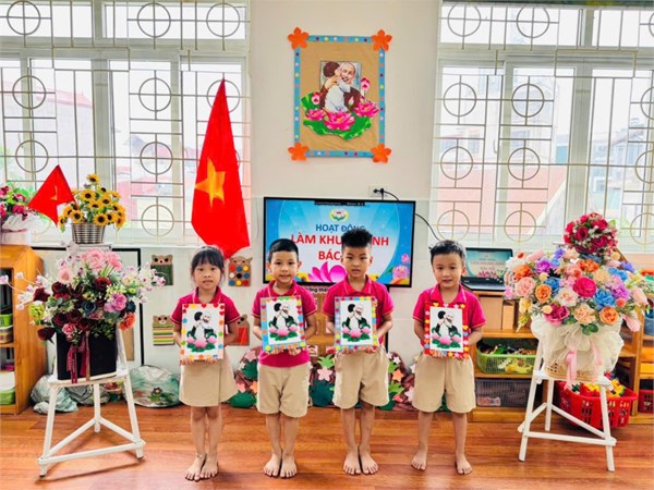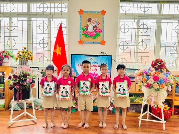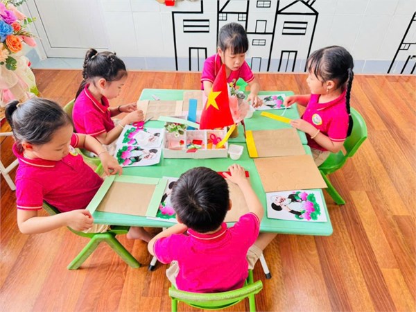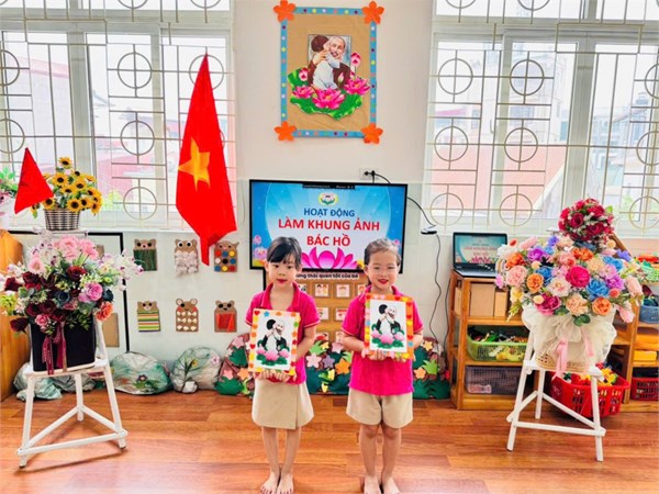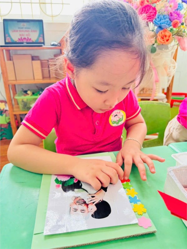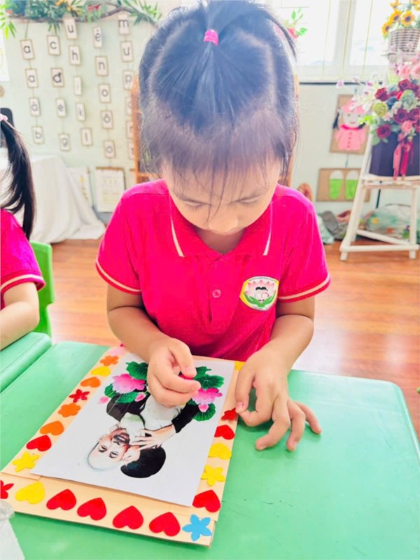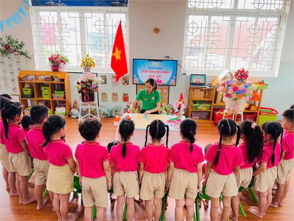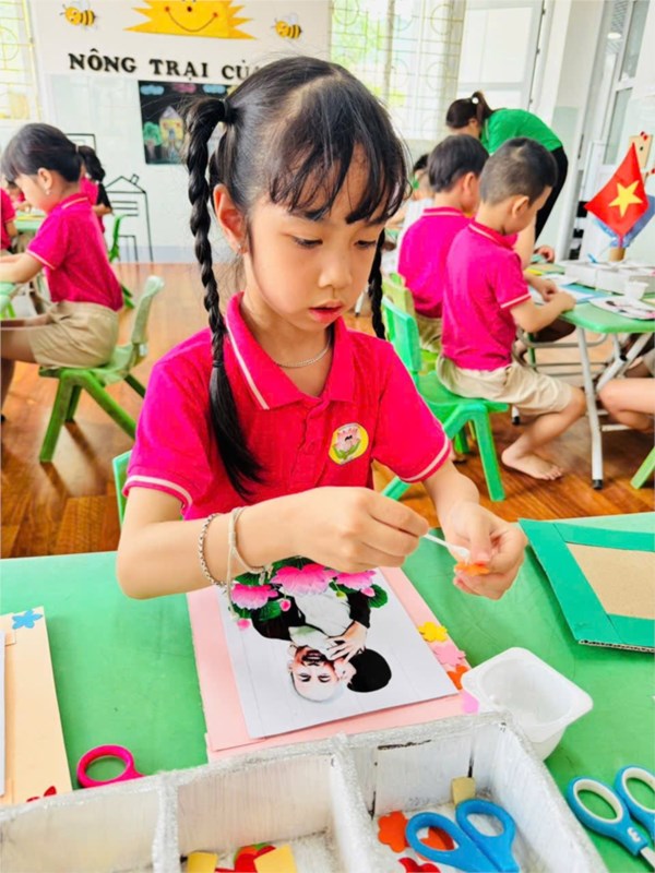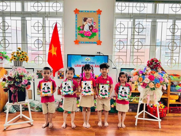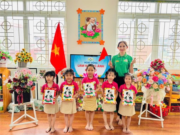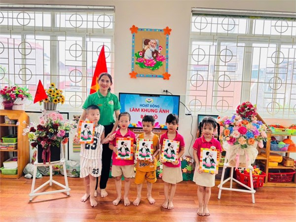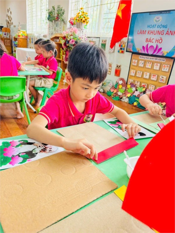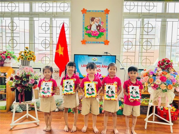 Tập ảnh : Ảnh đẹp tháng 5/2025 - Hoạt động tạo hình: Trang trí khung ảnh Bác Hồ - Lớp MG lớn A3