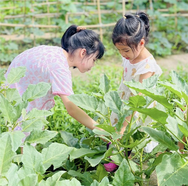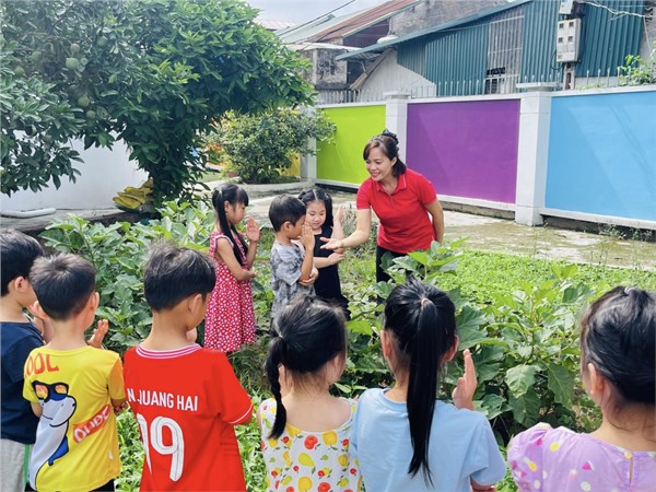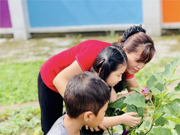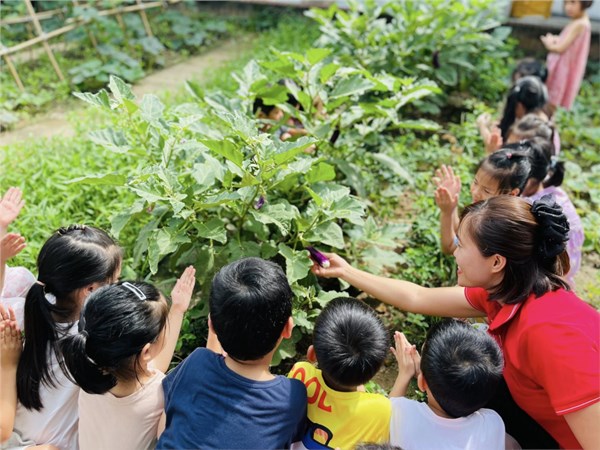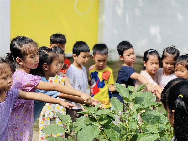 Tập ảnh : Ảnh đẹp tháng 6/2025 - Các bé Mẫu giáo lớn hào hứng khám phá vườn trường; Quan sát cây cà tím