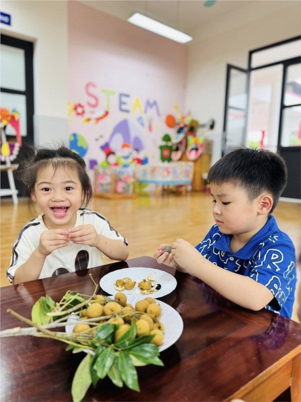 Tập ảnh : Ảnh đẹp tháng 8/2025- Các bạn nhỏ lớp B2 hào hứng khám phá quả nhãn