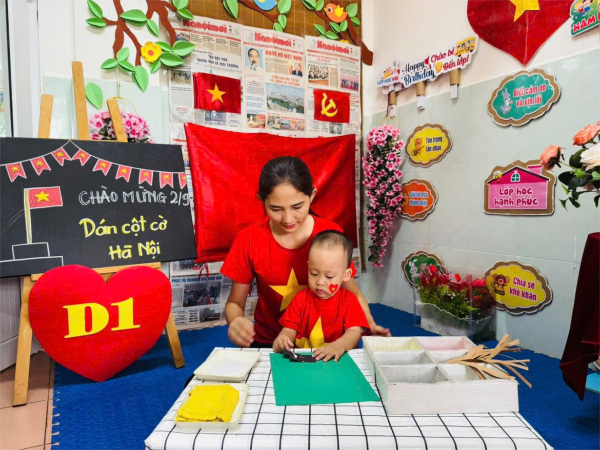 Tập ảnh : Ảnh đẹp tháng 8/2025 - Các bé Nhà trẻ hào hứng dán cột cờ Hà Nội