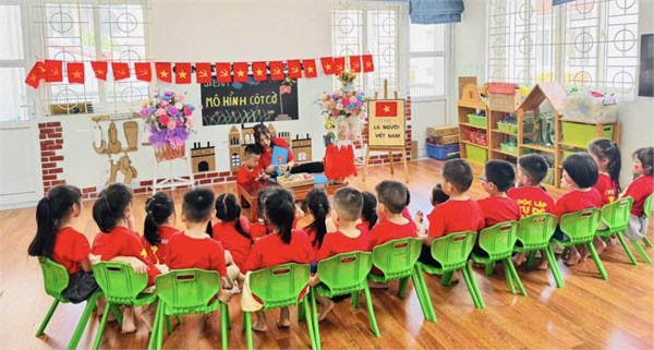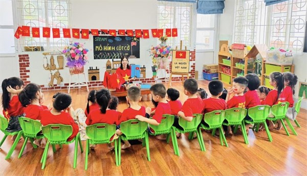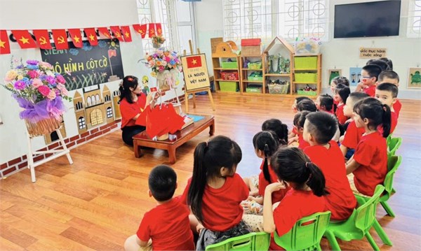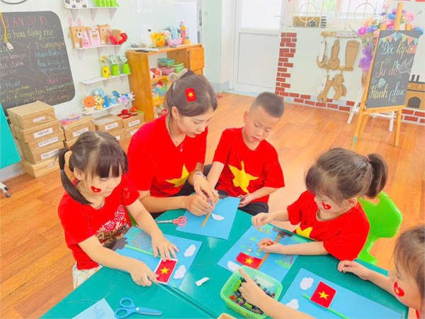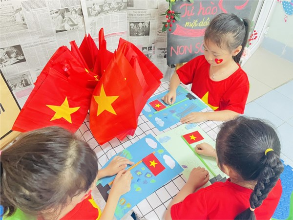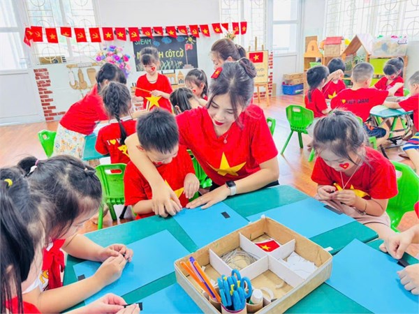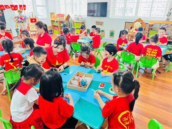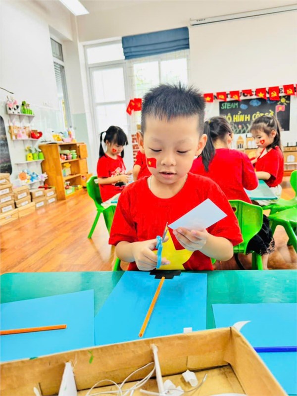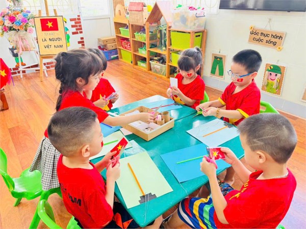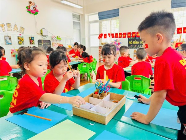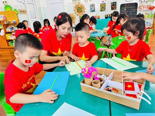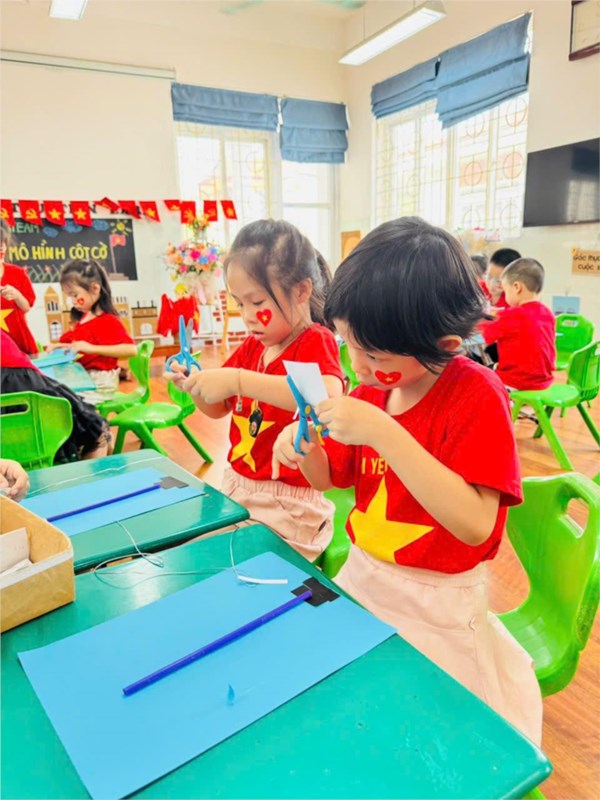 Tập ảnh : Ảnh đẹp tháng 8/2025 - HĐ sáng tạo “Làm mô hình cột cờ” của các bạn nhỏ lớp Mẫu giáo lớn A2
