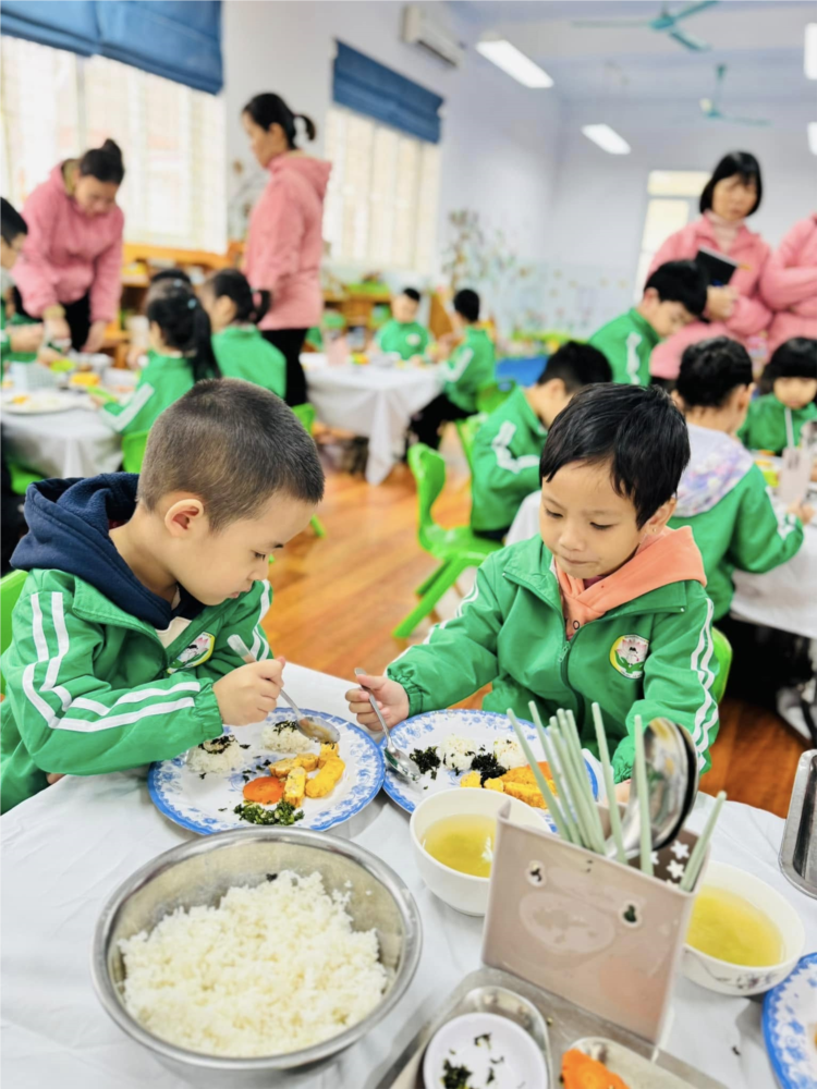 Ảnh đẹp tháng 12/2024 - Giờ ăn vui vẻ của các bé lớp MG lớn A2
