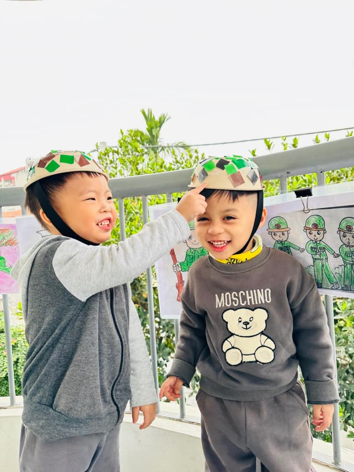 Ảnh đẹp tháng 12/2024 - Các bé lớp C3 trang trí mũ tặng chú bộ đội.