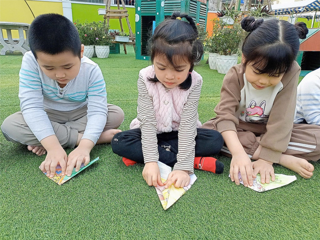 Ảnh đẹp tháng 3/2025- Hoạt động gấp máy bay giấy của các bé lớp MG lớn A1