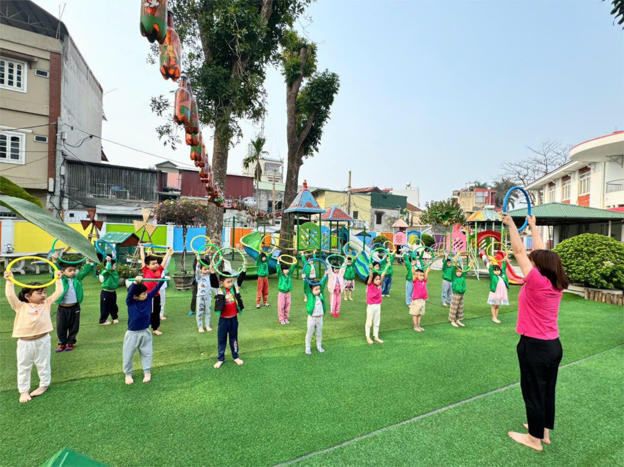 Ảnh đẹp tháng 6/2025 - Giờ học phát triển vận động sôi nổi của các bé lớp mẫu giáo nhỡ