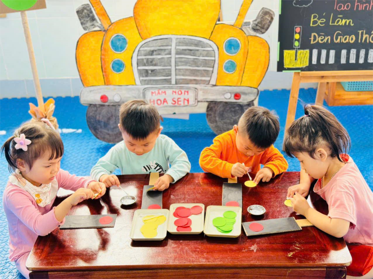 Ảnh đẹp tháng 3/2025 - Giờ học tạo hình "Làm đèn giao thông " - Lớp MG bé C2
