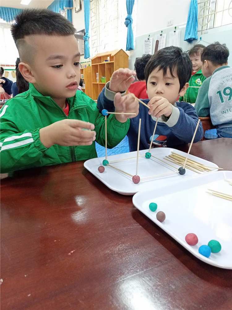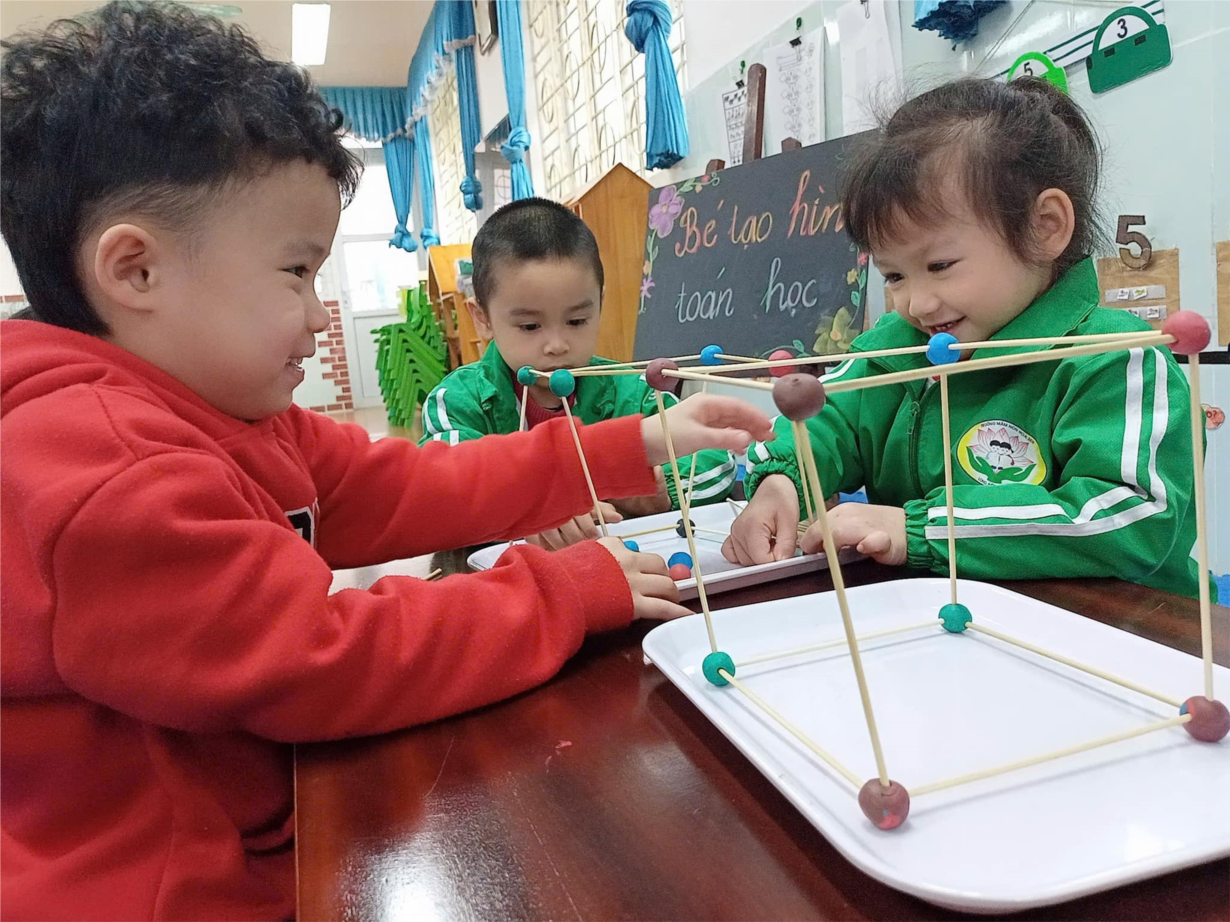 Ảnh đẹp tháng 2 - Các bé lớp MG lớn A1 sáng tạo hình khối