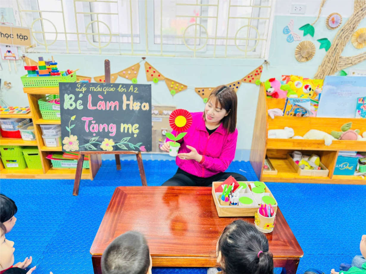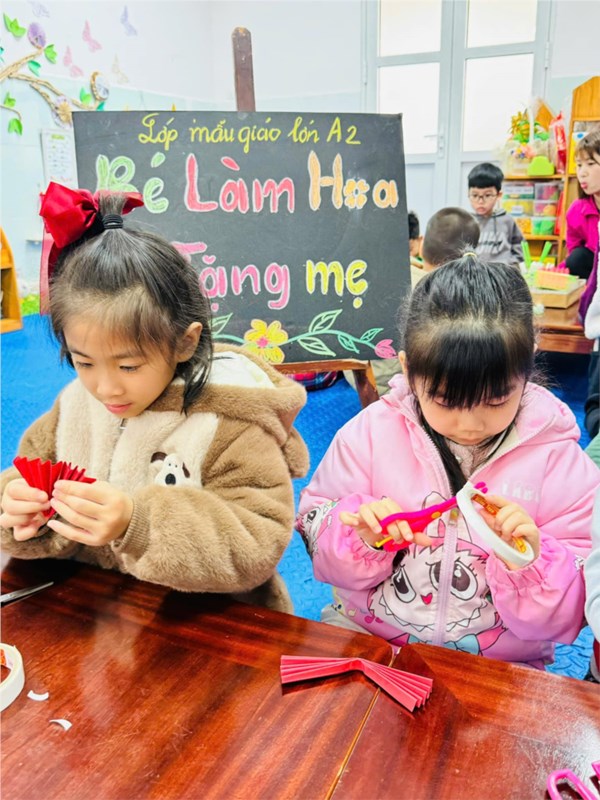 Ảnh đẹp tháng 3/2025- Các bé lớp MG lớn A2 làm hoa tặng mẹ ngày 8/3