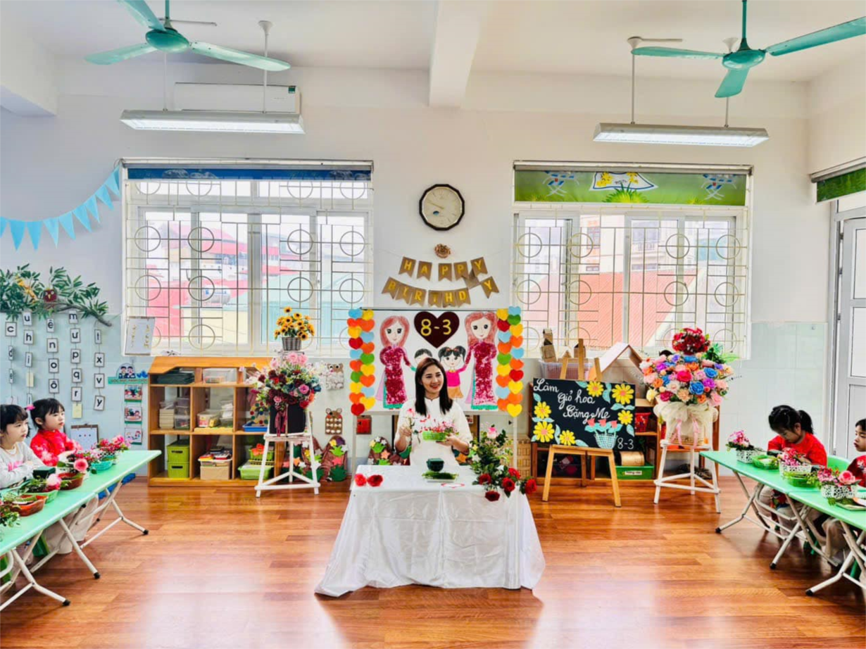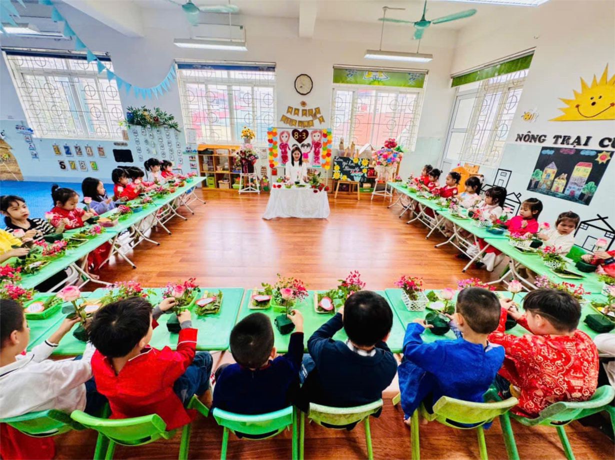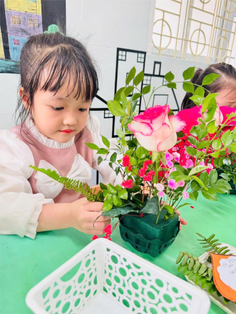 Ảnh đẹp tháng 3/2025- Các bé lớp MGL A3 cắm giỏ hoa tặng mẹ 8/3
