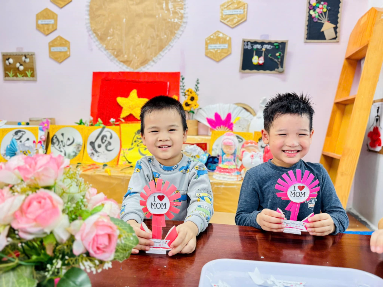 Ảnh đẹp tháng 3/2025 - Các bé lớp Mẫu giáo C1 làm bưu thiếp chúc mừng ngày 8/3