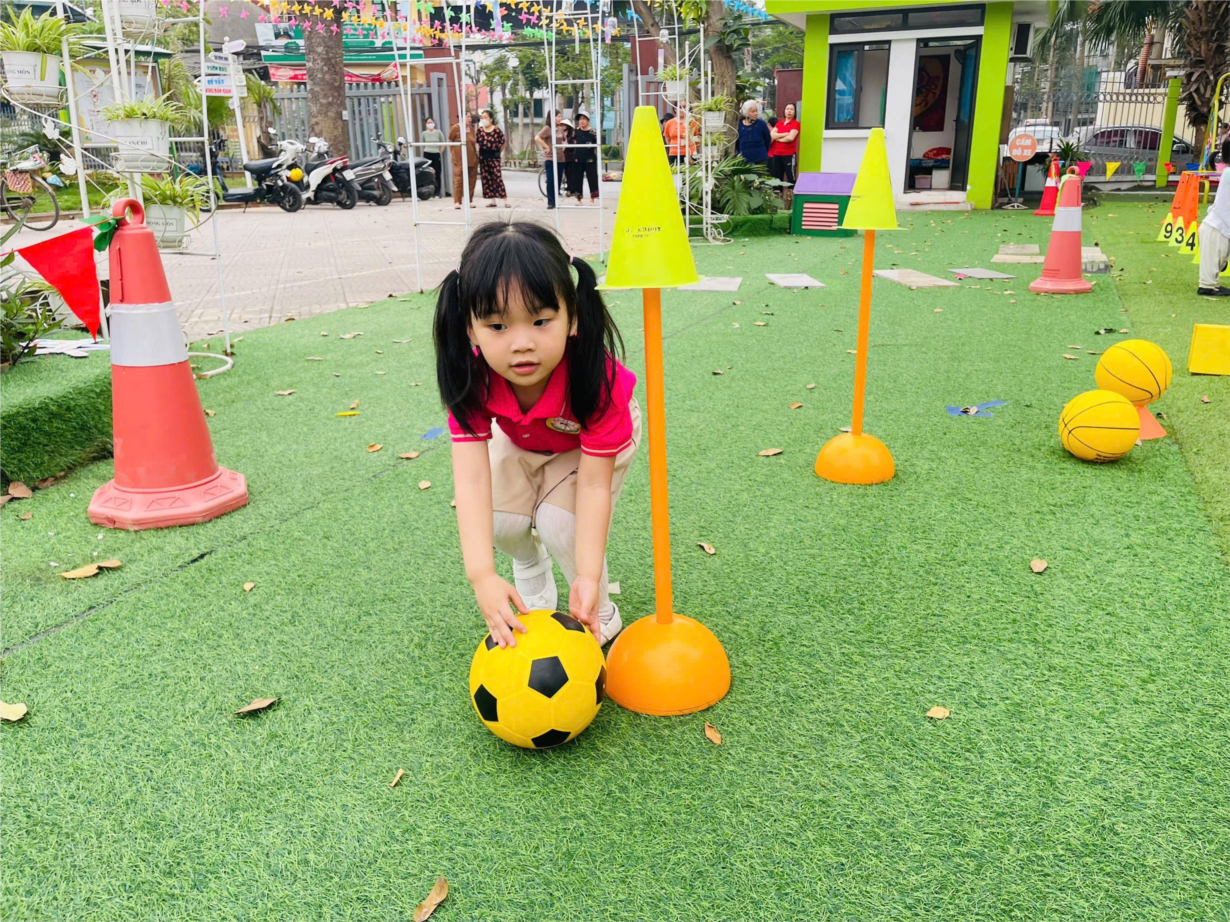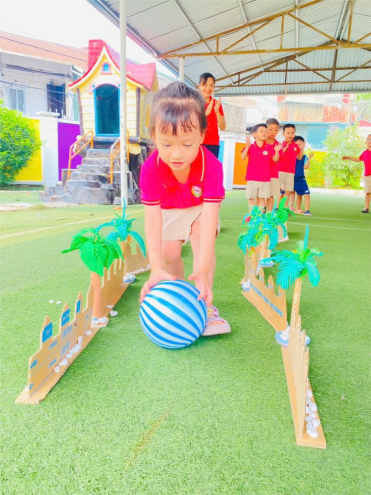 Ảnh đẹp tháng 5/2025 - Vận động “Lăn bóng theo đường zích zắc” – Lớp MG lớn A1