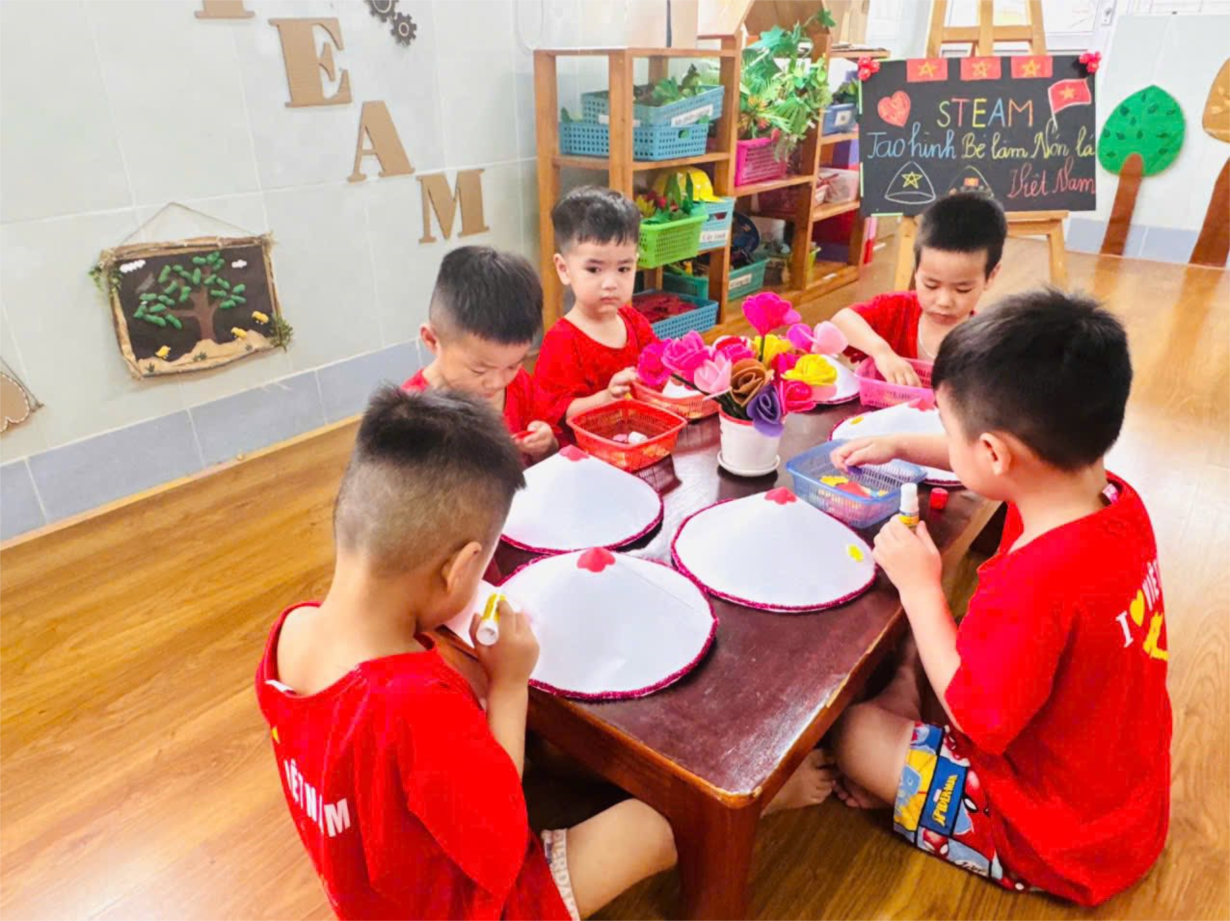 Ảnh đẹp tháng 4/2025 - Hoạt động tạo hình: Trang trí nón lá Việt Nam - Lớp MG bé C2