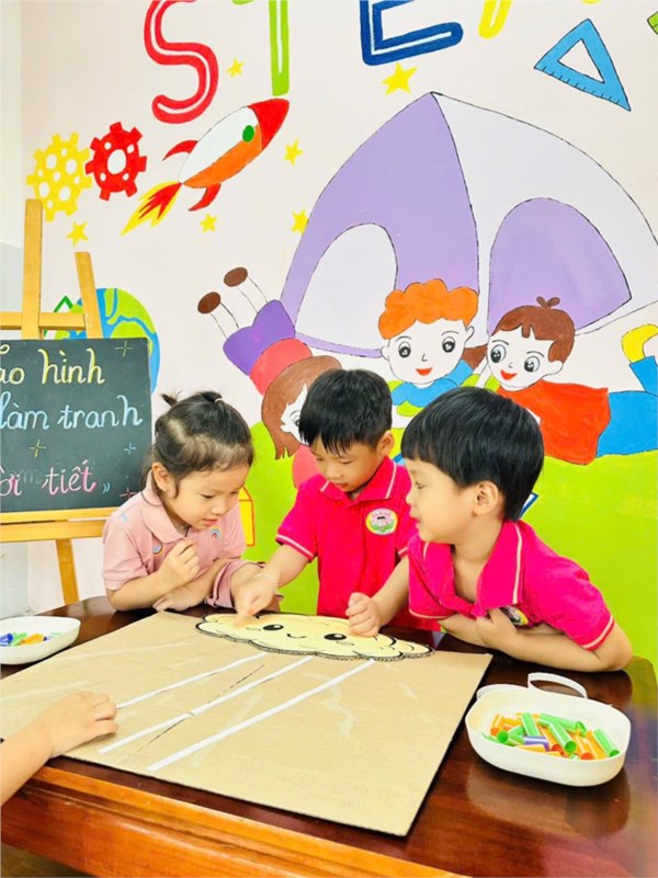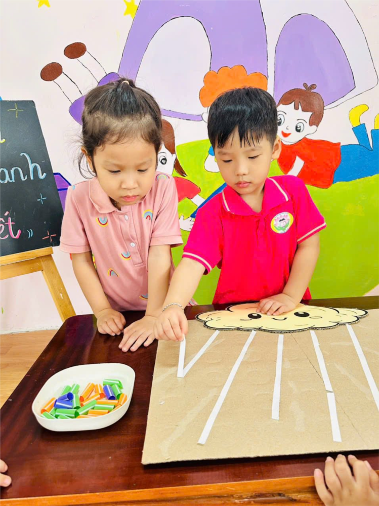 Ảnh đẹp tháng 5/2025 - Các bé lớp MG C3 hào hứng tham gia hoạt động sáng tạo “Làm tranh chủ đề Thời tiết”.