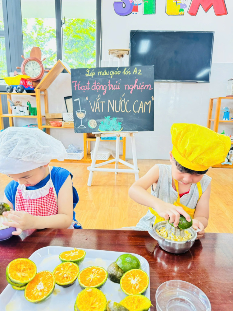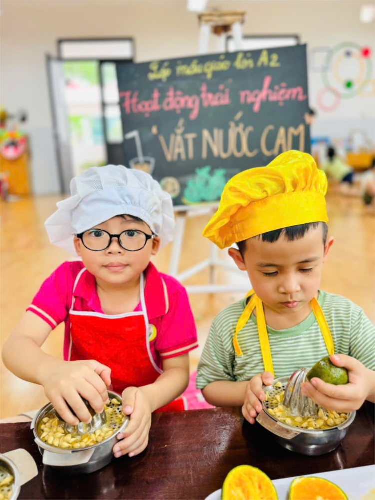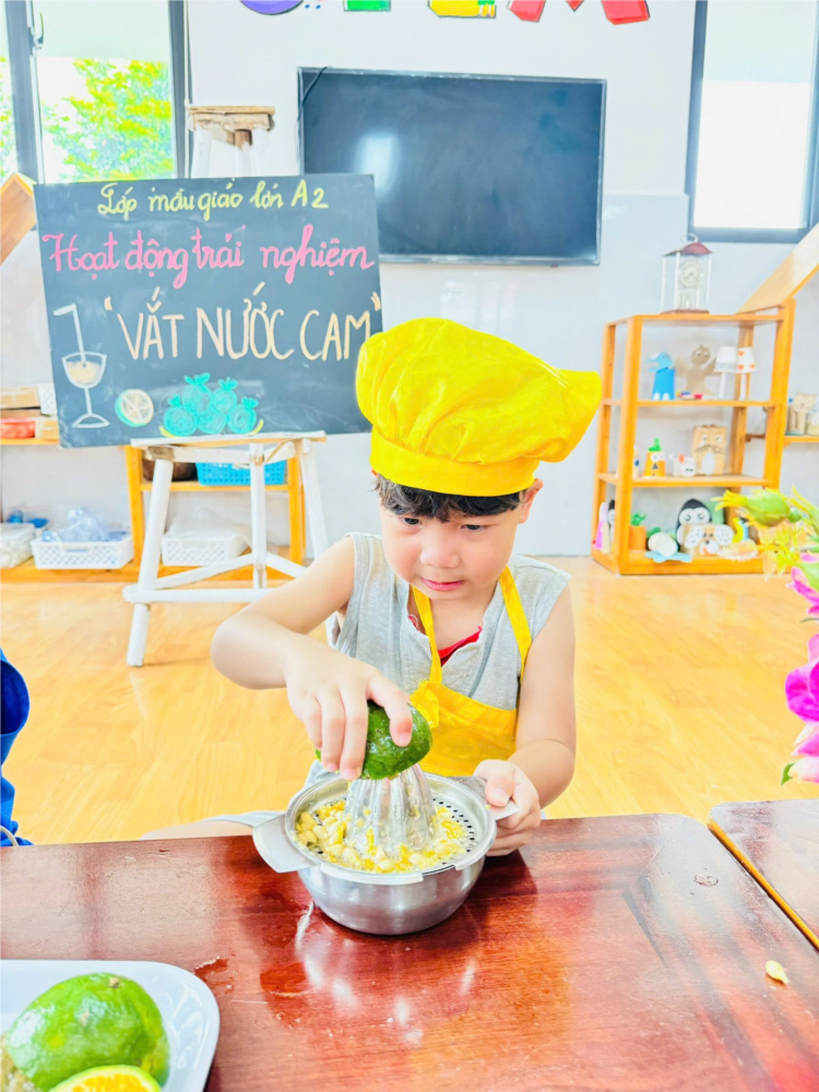 Ảnh đẹp tháng 5/2025 - Bé thực hành vắt nước cam - Lớp MG lớn A2