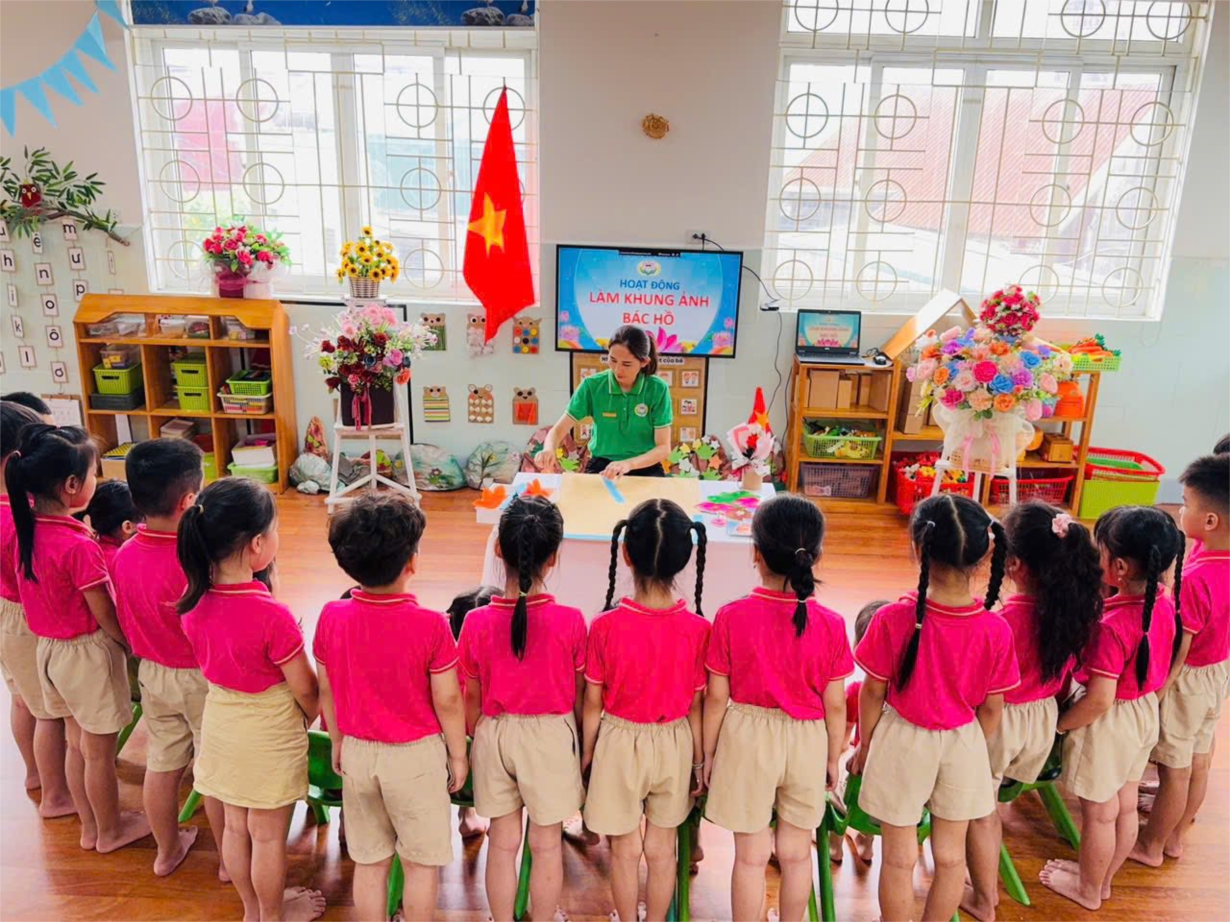 Ảnh đẹp tháng 5/2025 - Hoạt động tạo hình: Trang trí khung ảnh Bác Hồ - Lớp MG lớn A3