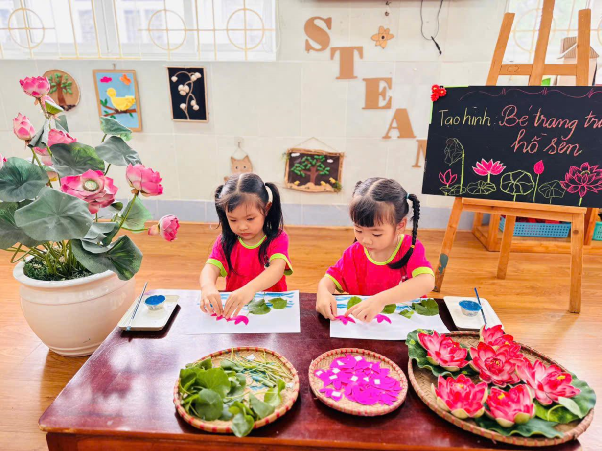Ảnh đẹp tháng 5/2025 - Các bé lớp Mẫu giáo C2 hào hứng tham gia hoạt động " Trang trí hồ sen - kính dâng tặng Bác Hồ"
