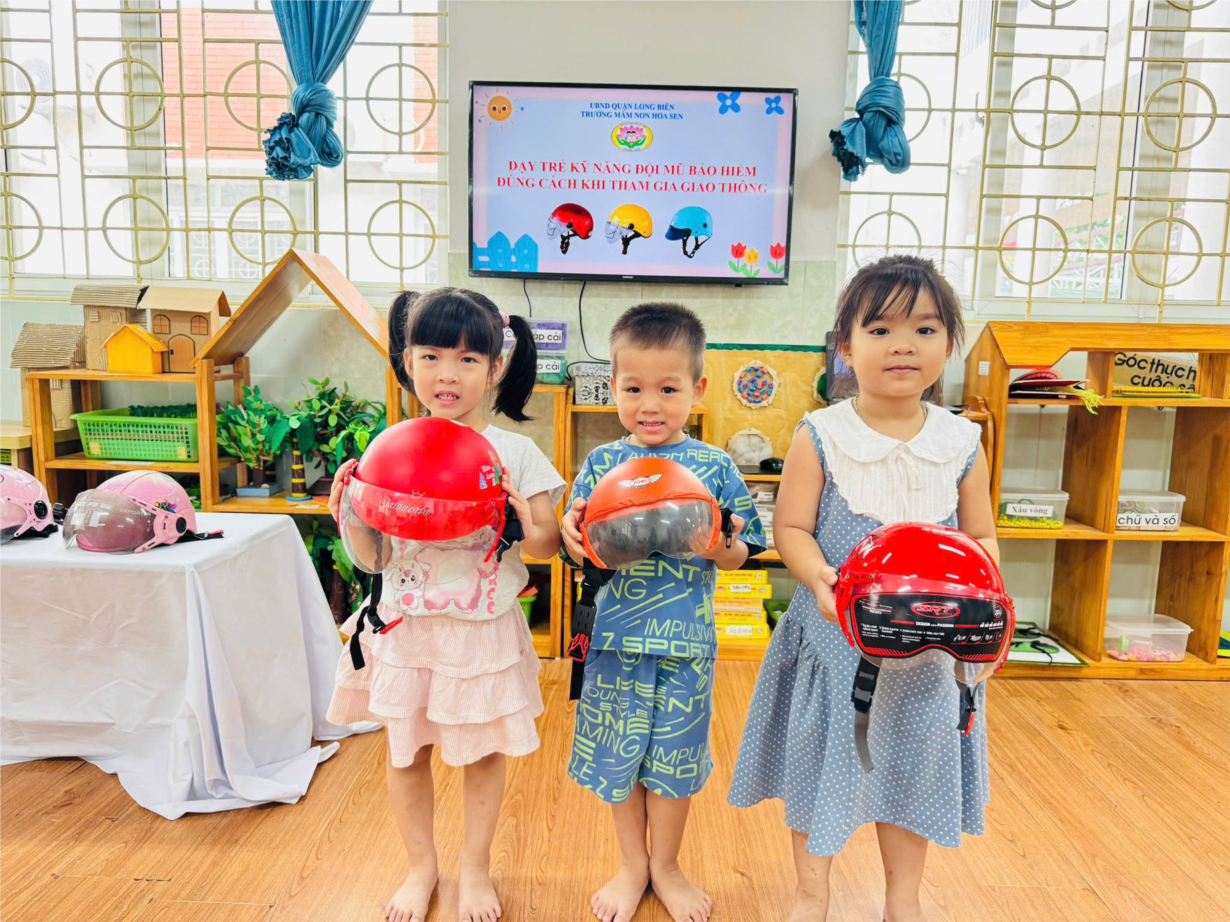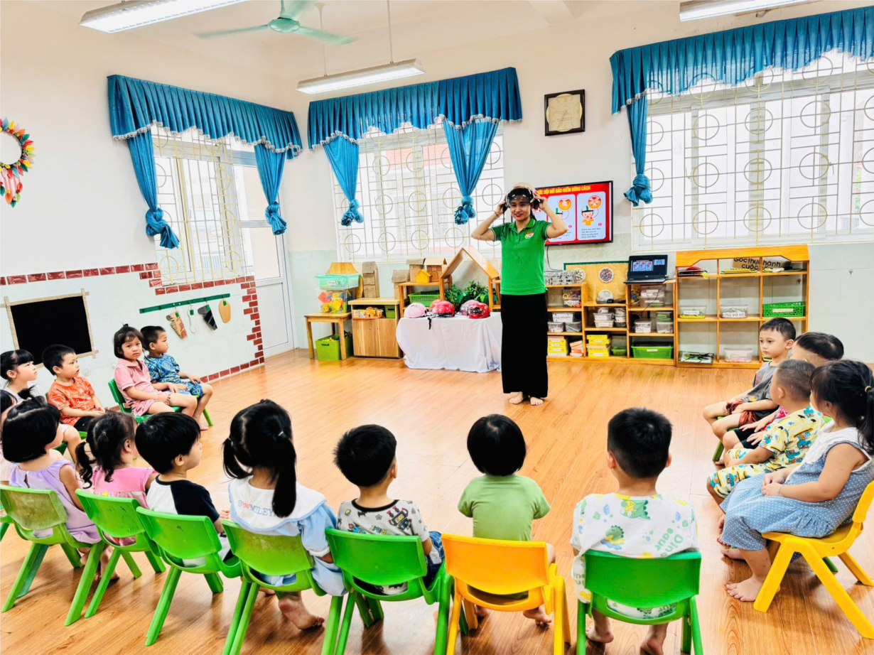 Ảnh đẹp tháng 7/2025 - Dạy trẻ KN đội mũ bảo hiểm khi tham gia giao thông - Lớp MGN B3