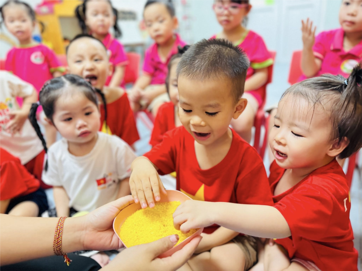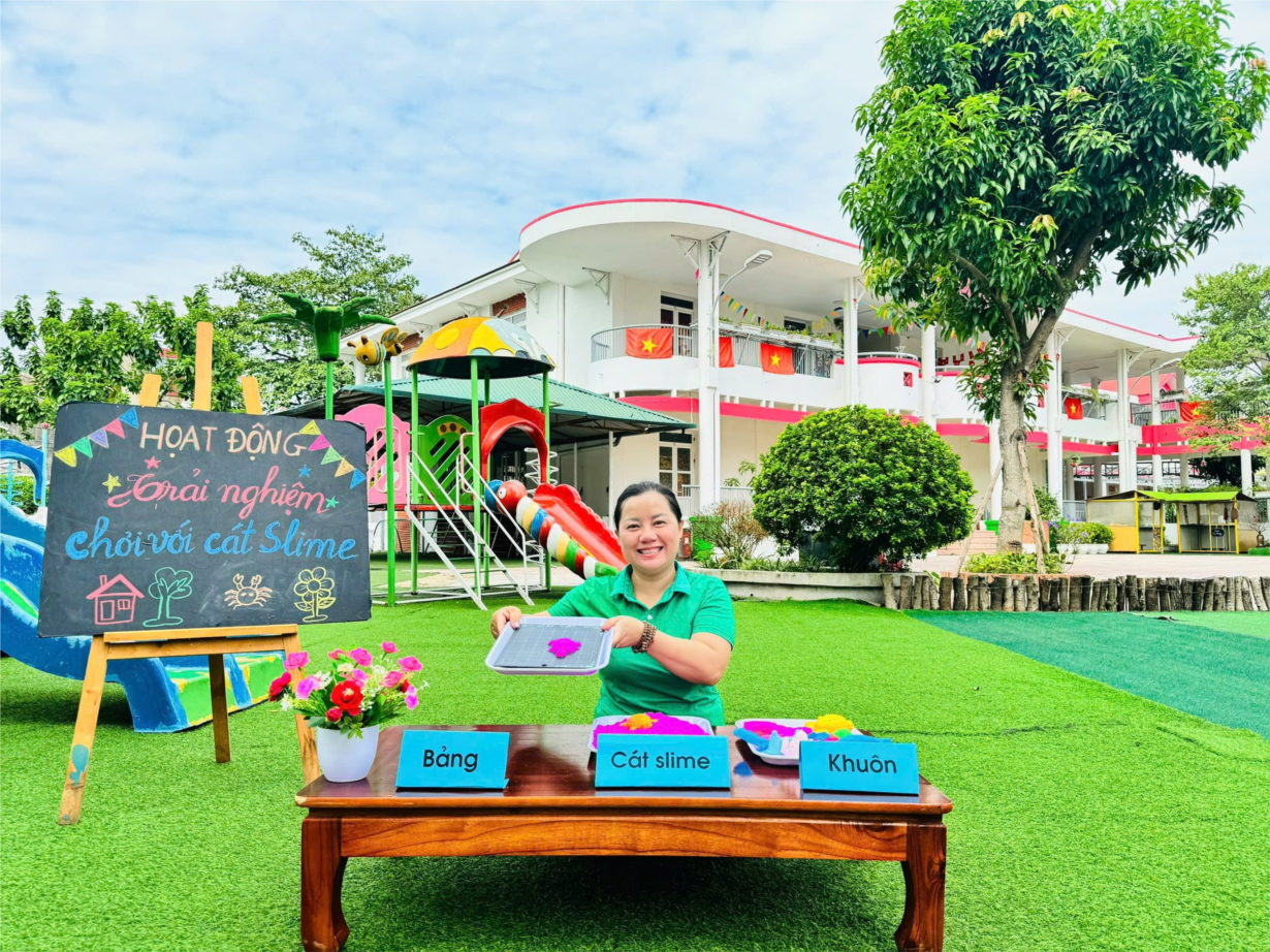 Ảnh đẹp tháng 10/2025 - Các bé lớp B2 thích thú chơi với cát Slime
