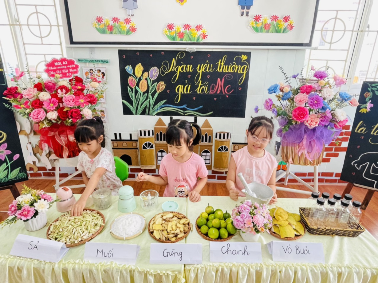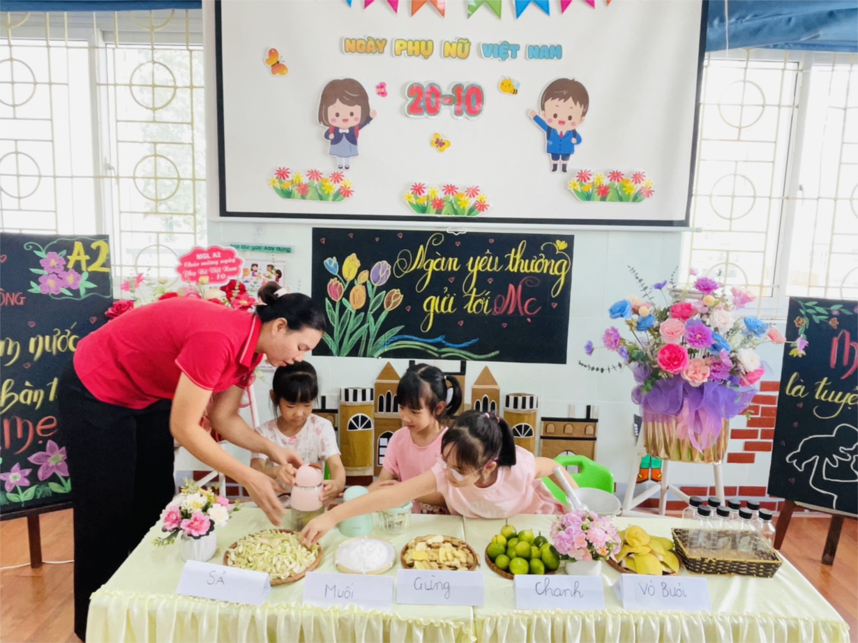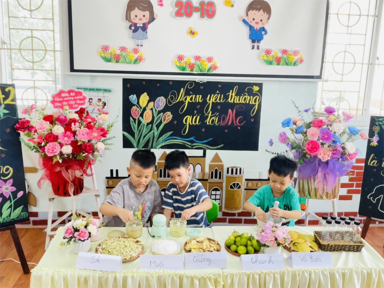 Ảnh đẹp tháng 10/2025- Các bé lớp A2 thích thú tham gia HĐ trải nghiệm " Làm nước ngâm chân tặng mẹ"