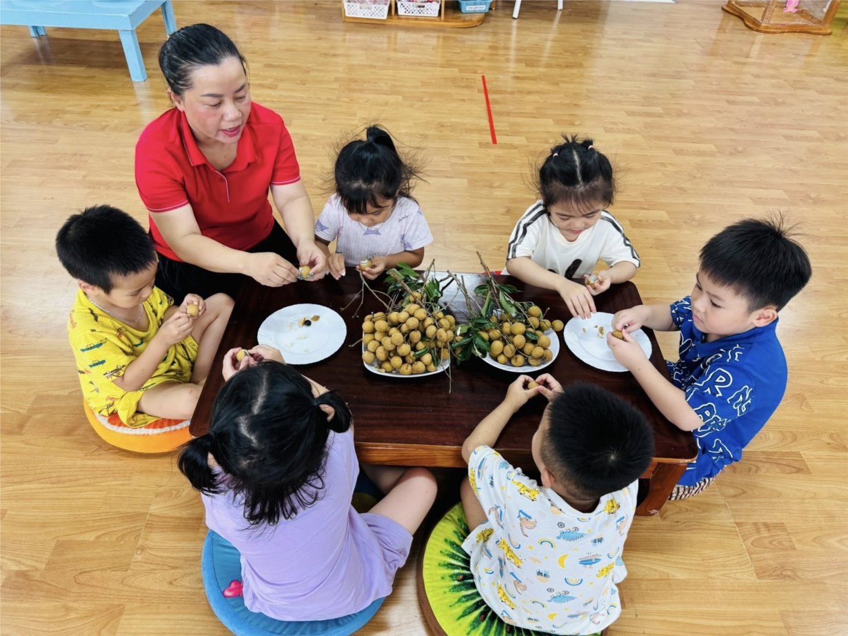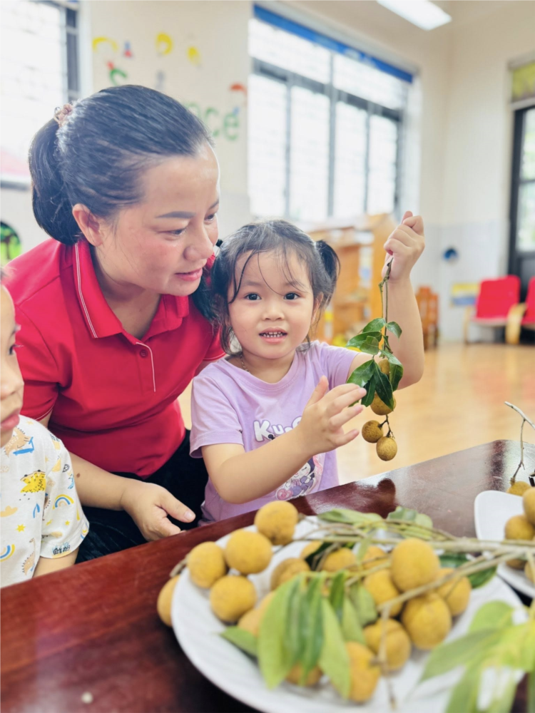 Ảnh đẹp tháng 8/2025- Các bạn nhỏ lớp B2 hào hứng khám phá quả nhãn