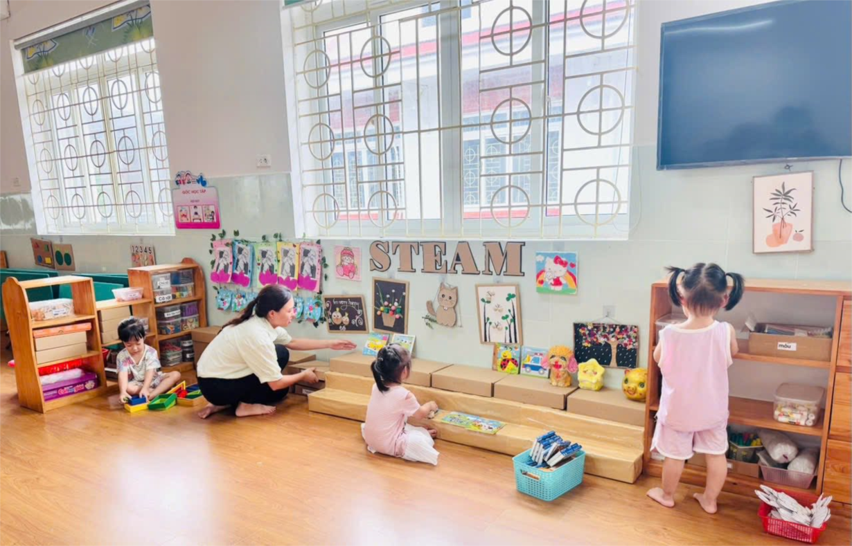 Ảnh đẹp tháng 9/2025- Các bé lớp Nhà trẻ hào hứng tham gia hoạt động Nhận biết và phân biệt đồ dùng cá nhân