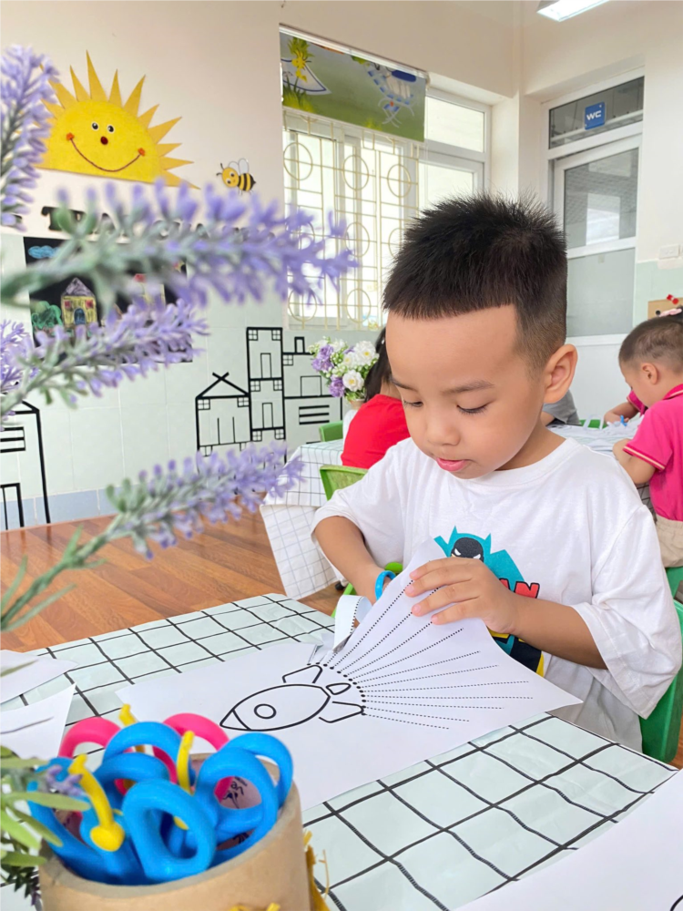 Ảnh đẹp tháng 9/2025- Giờ học KN sử dụng kéo của các bé lớp A1