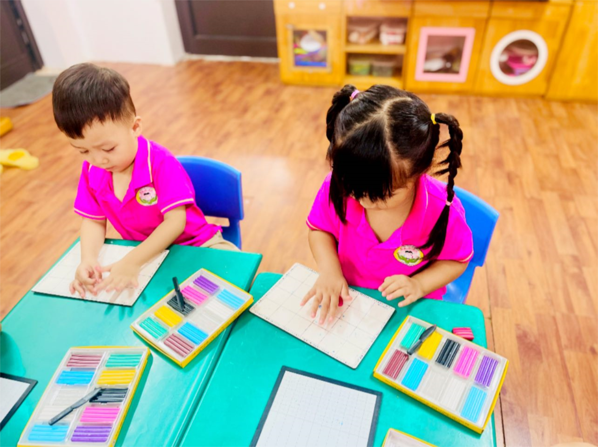 Ảnh đẹp tháng 11/2025 - Tiết học Steam của các bé lớp A1- Cùng tạo hình cầu trượt vui nhộn.