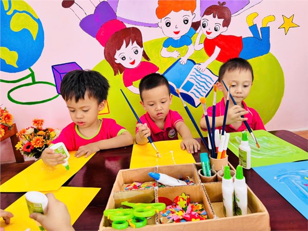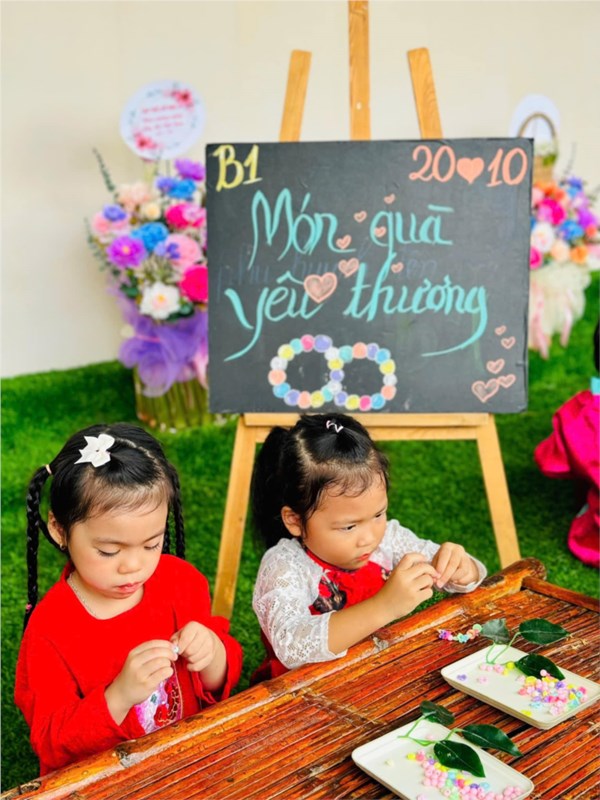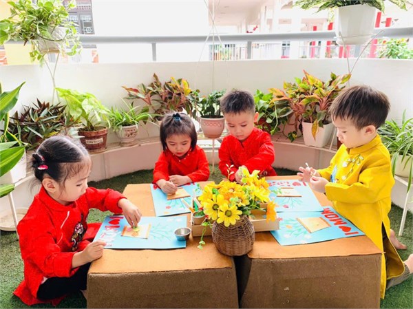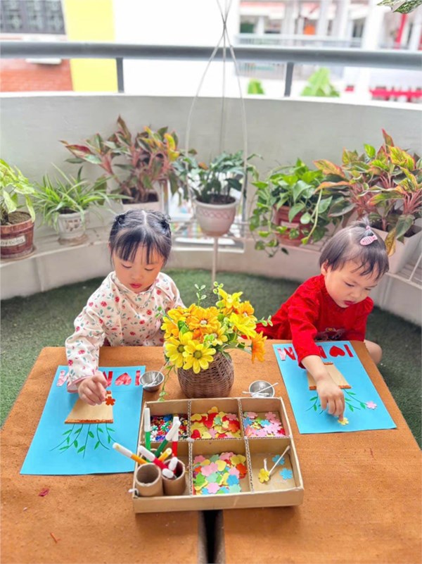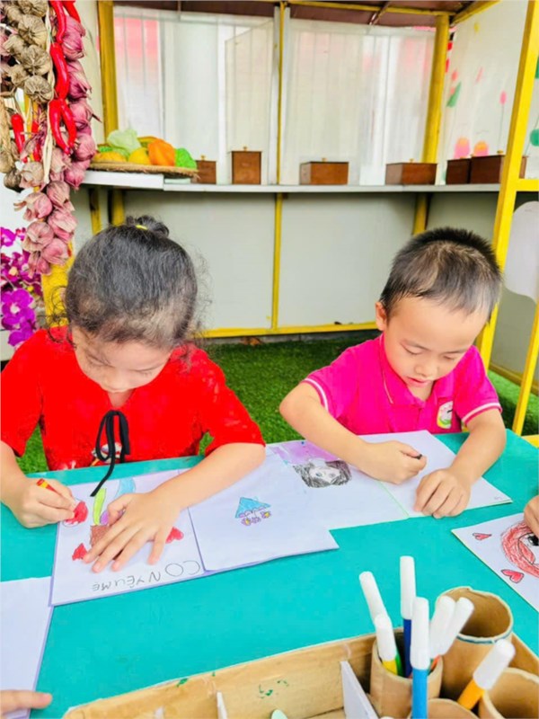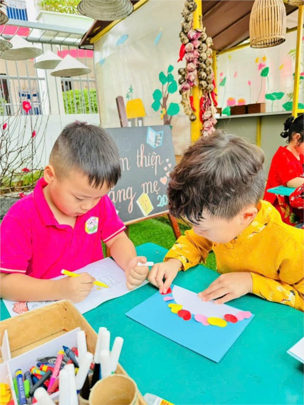 Tập ảnh : Bé trải nghiệm làm bưu thiếp, làm quà tặng mẹ