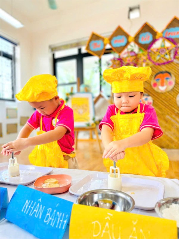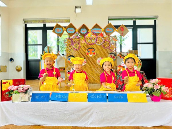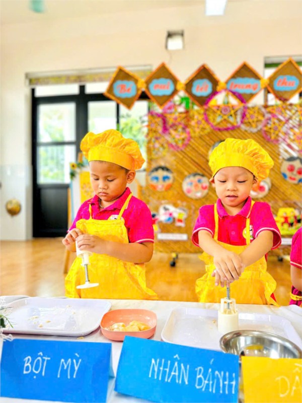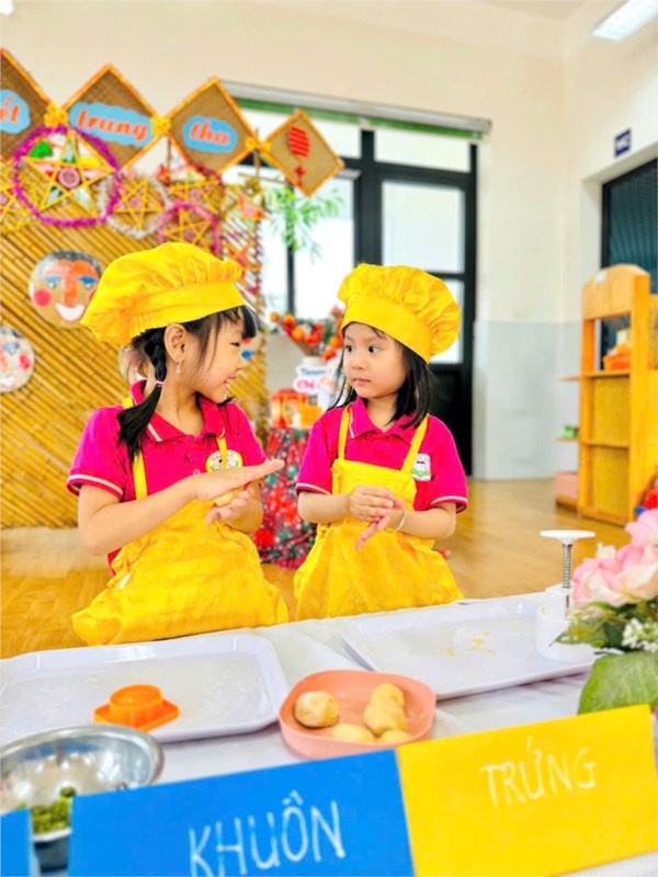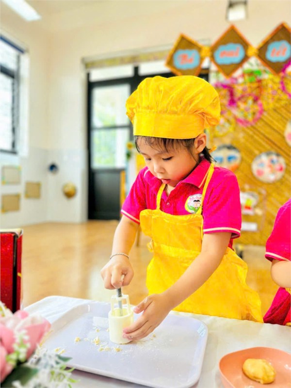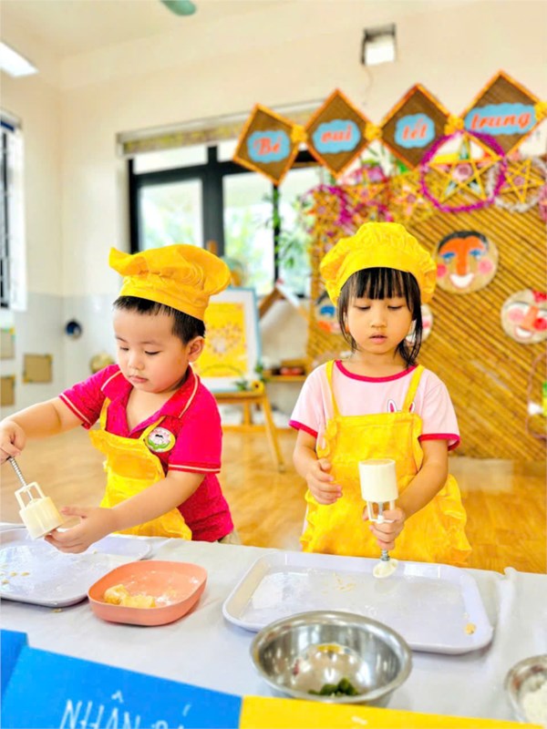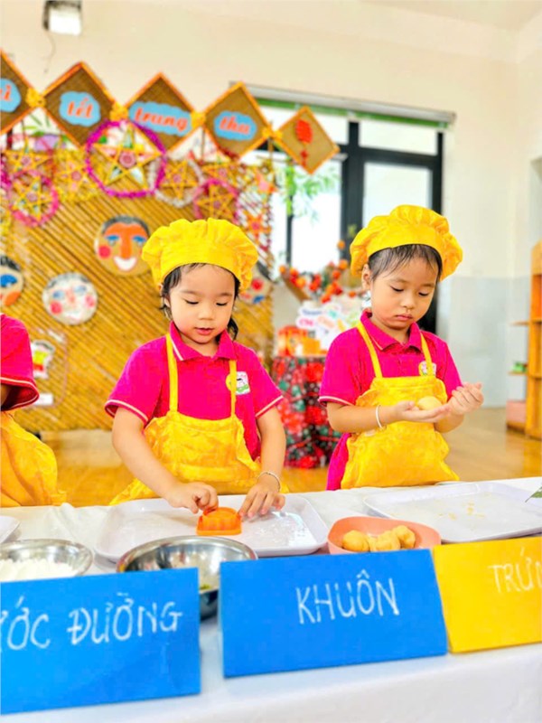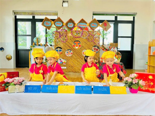 Tập ảnh : Các bé lớp B2 trải nghiệm làm bánh Trung thu