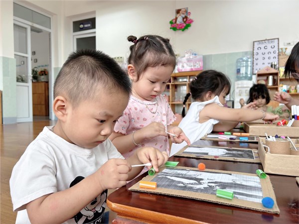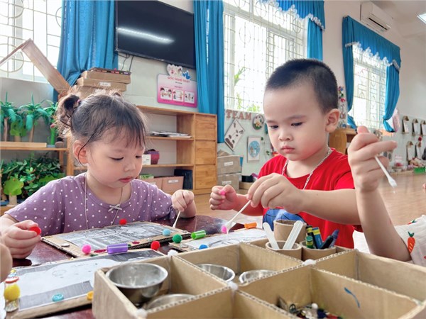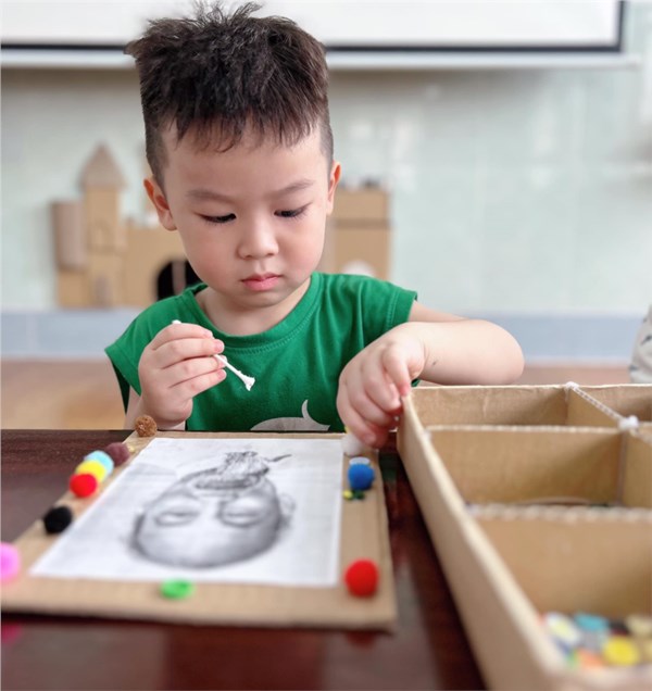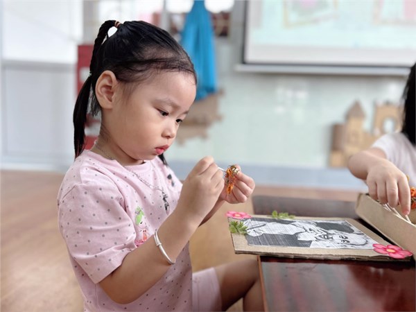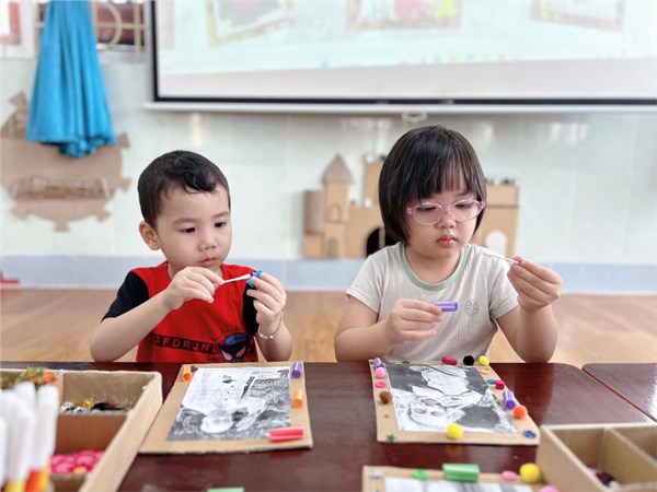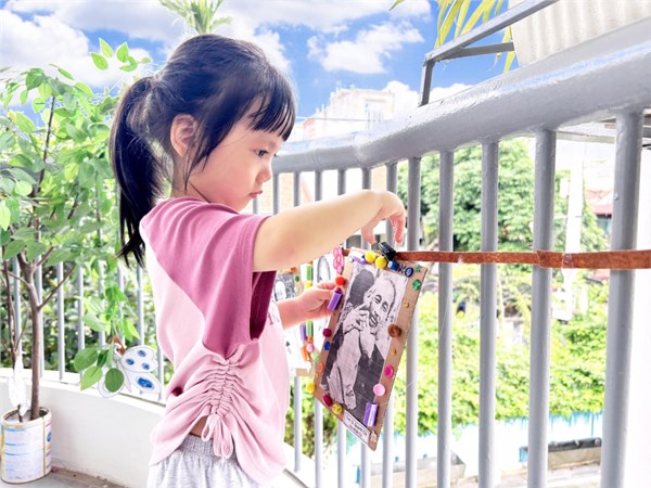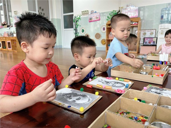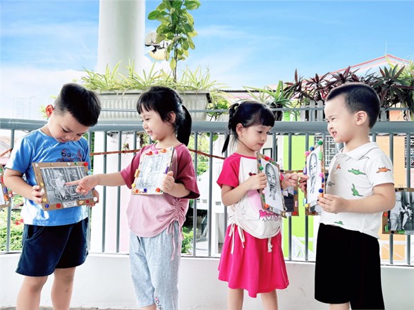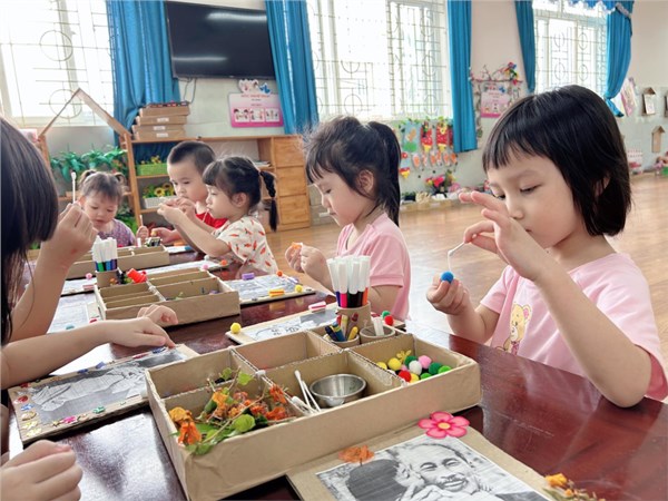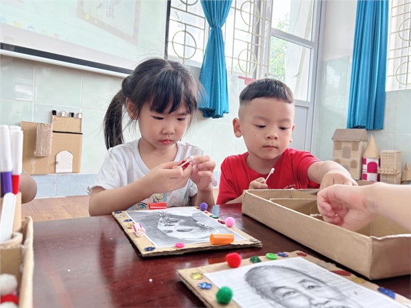 Tập ảnh : Các bé lớp MG bé C3 với hoạt động "Trang trí khung ảnh Bác Hồ"