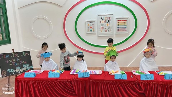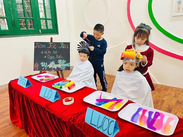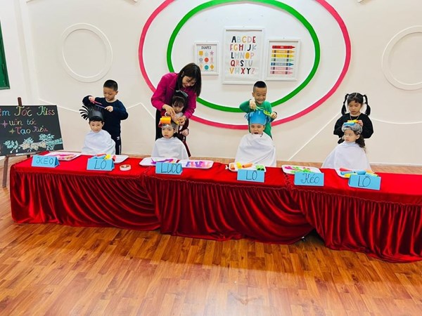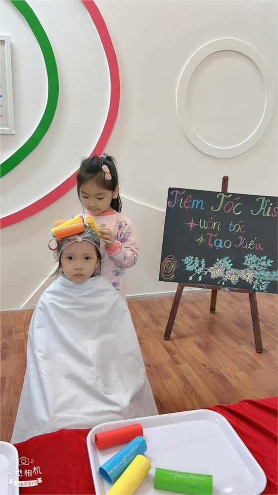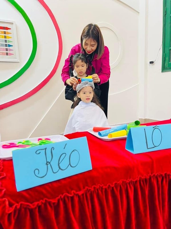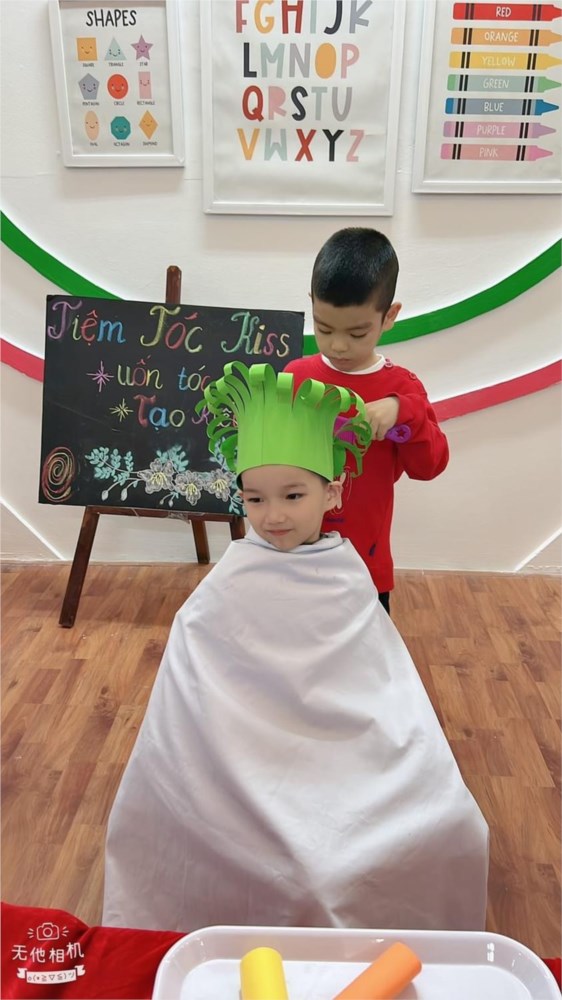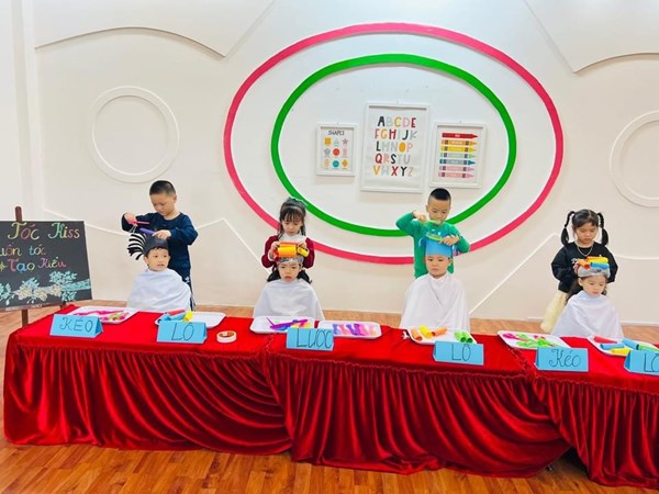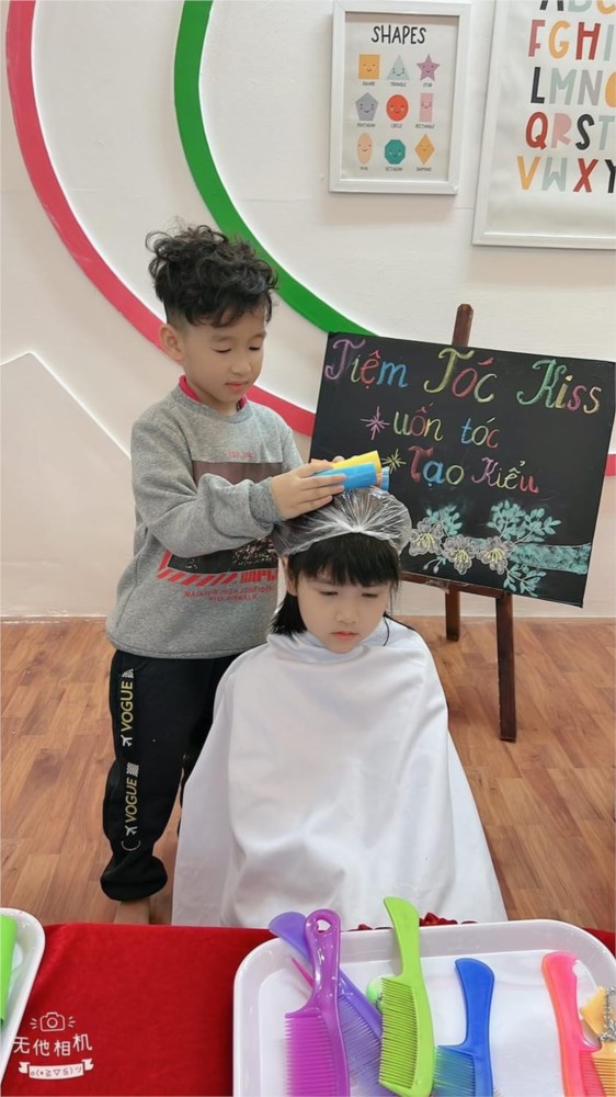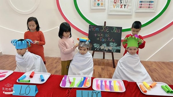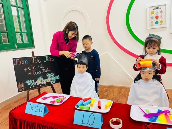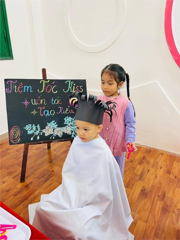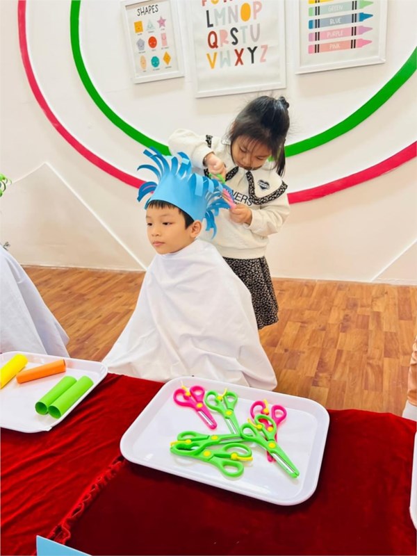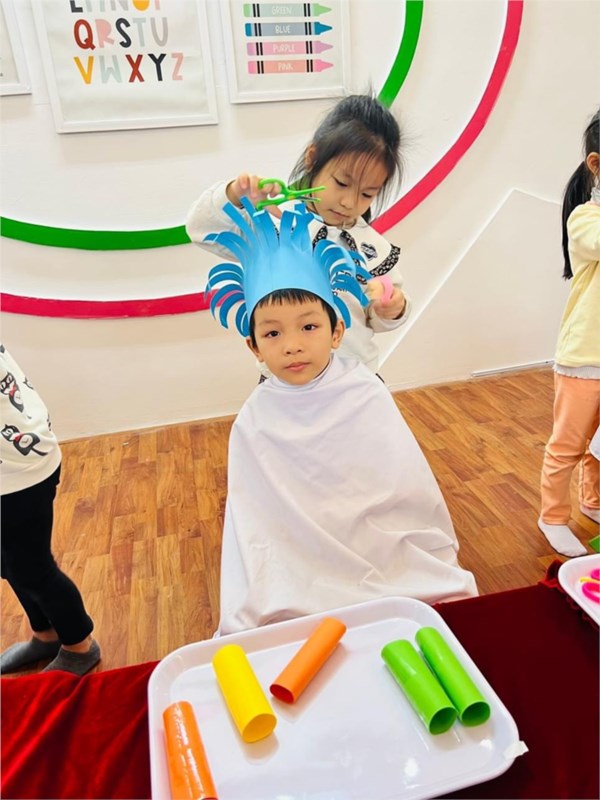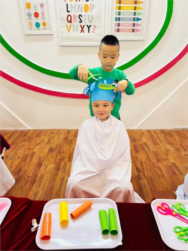 Tập ảnh : Các bé lớp MG lớn A1 "làm thợ cắt tóc"